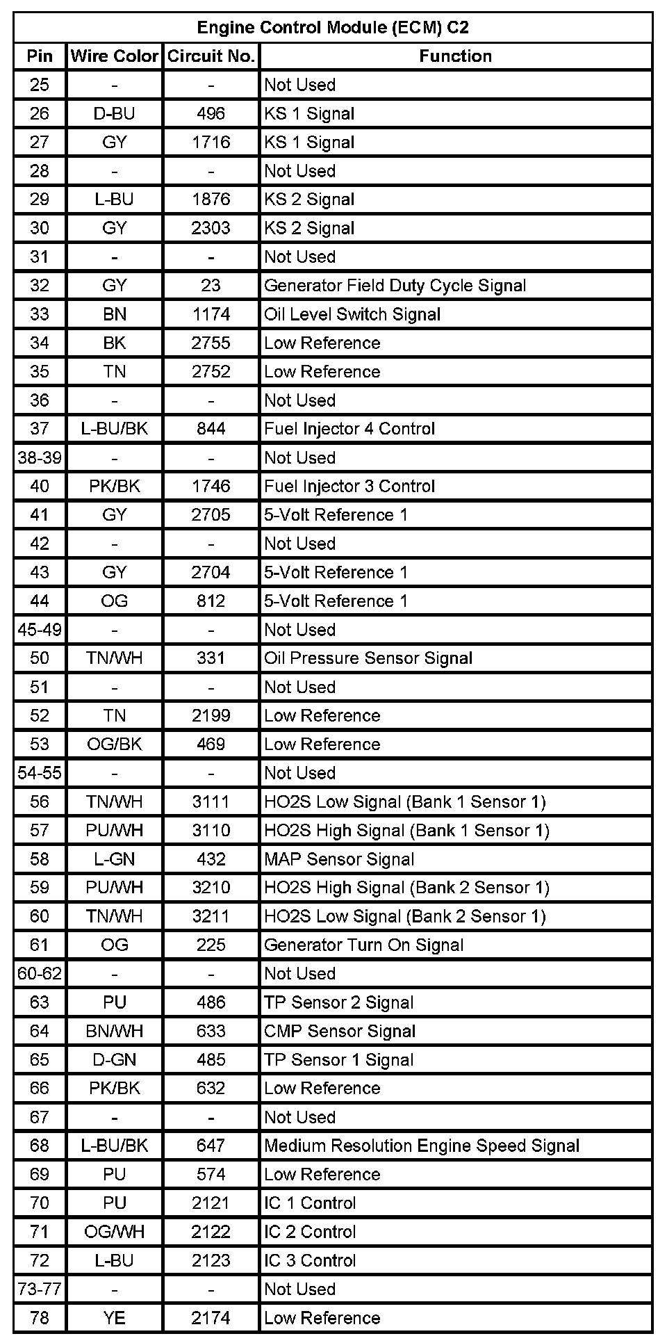 Engine Control Module (ECM) C2 (Pin 25 To 78):