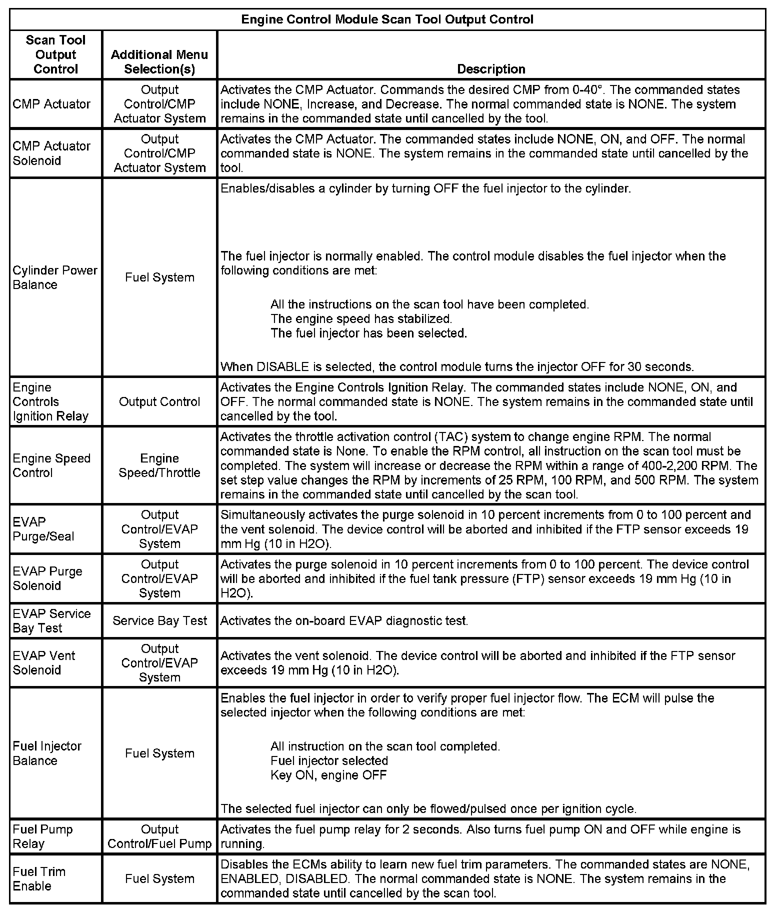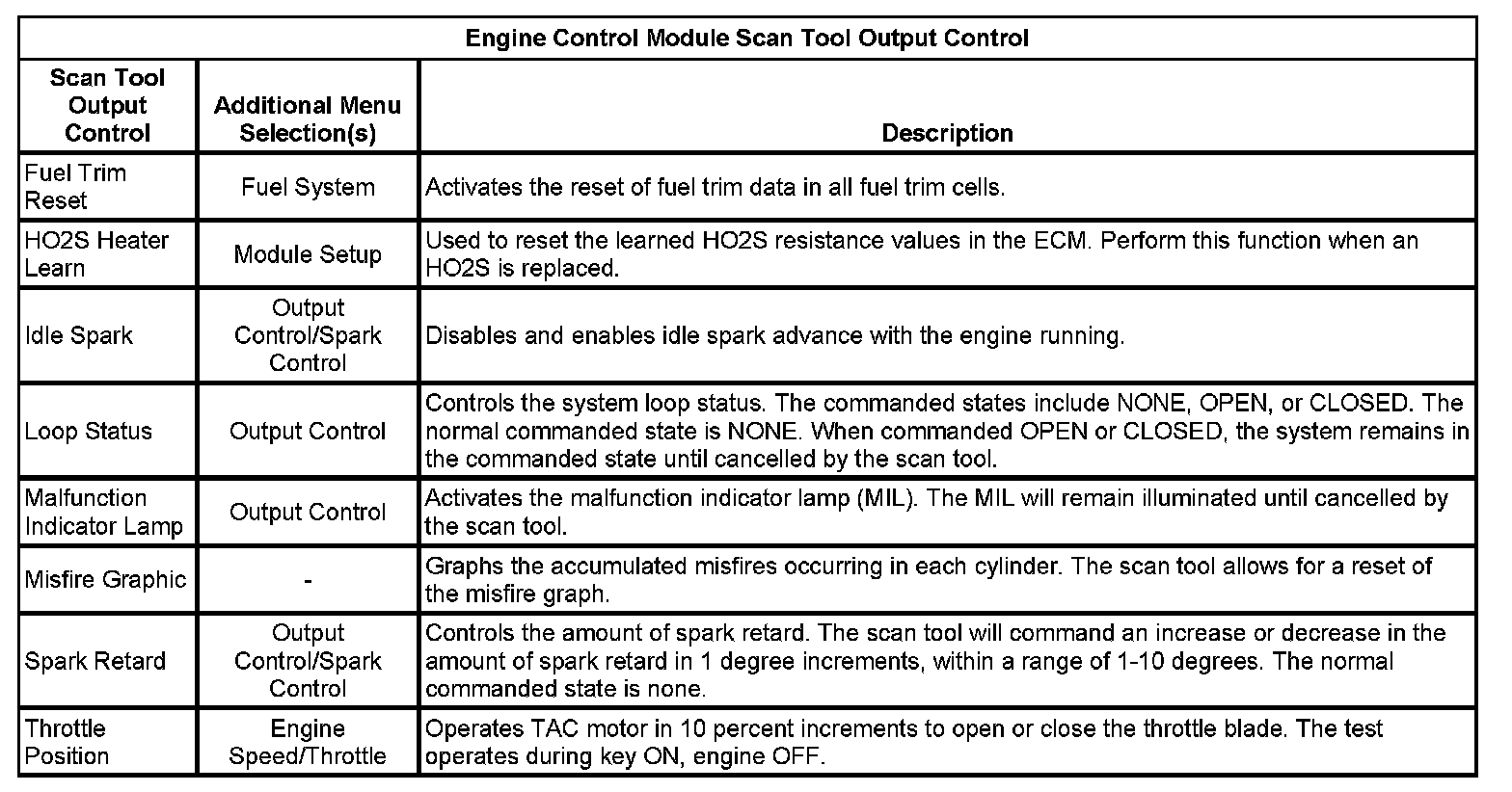 Scan Tool Output Controls