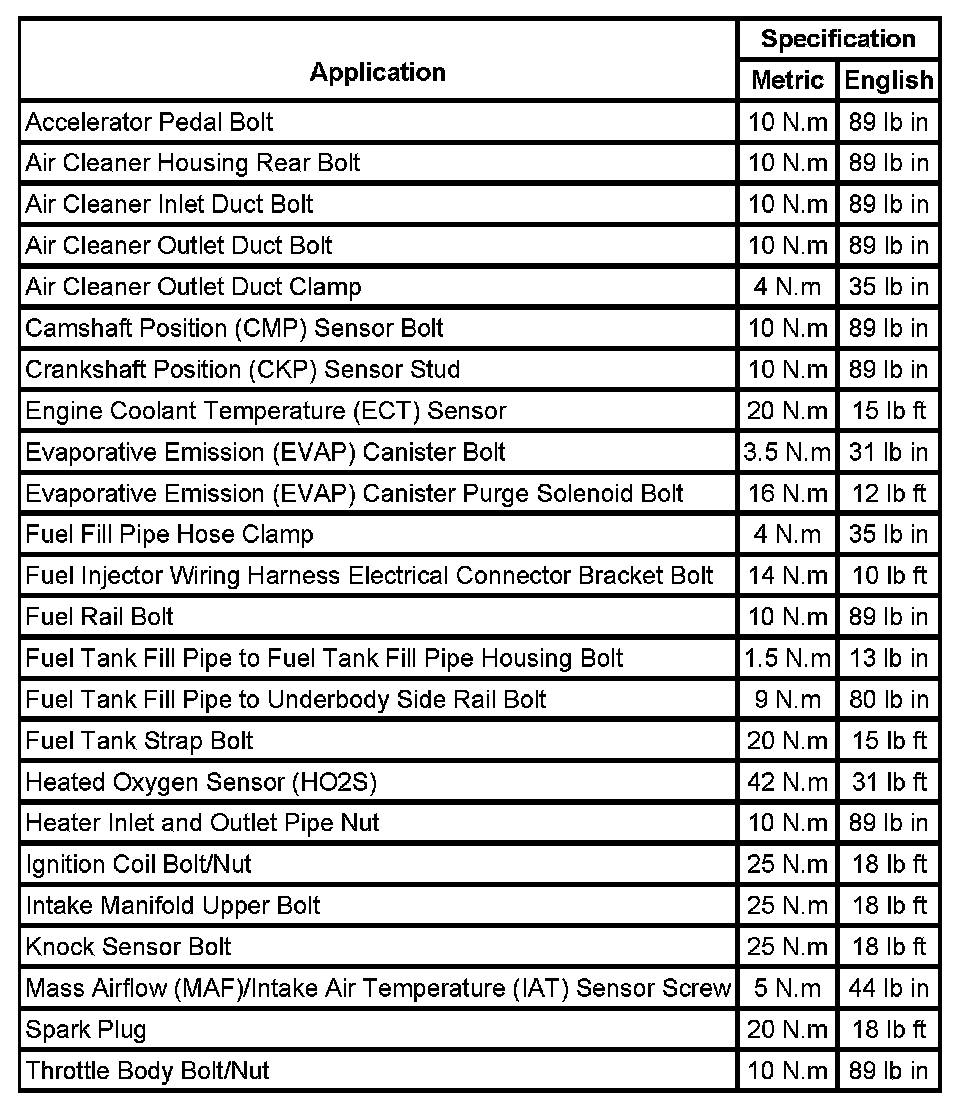 Fastener Tightening Specifications