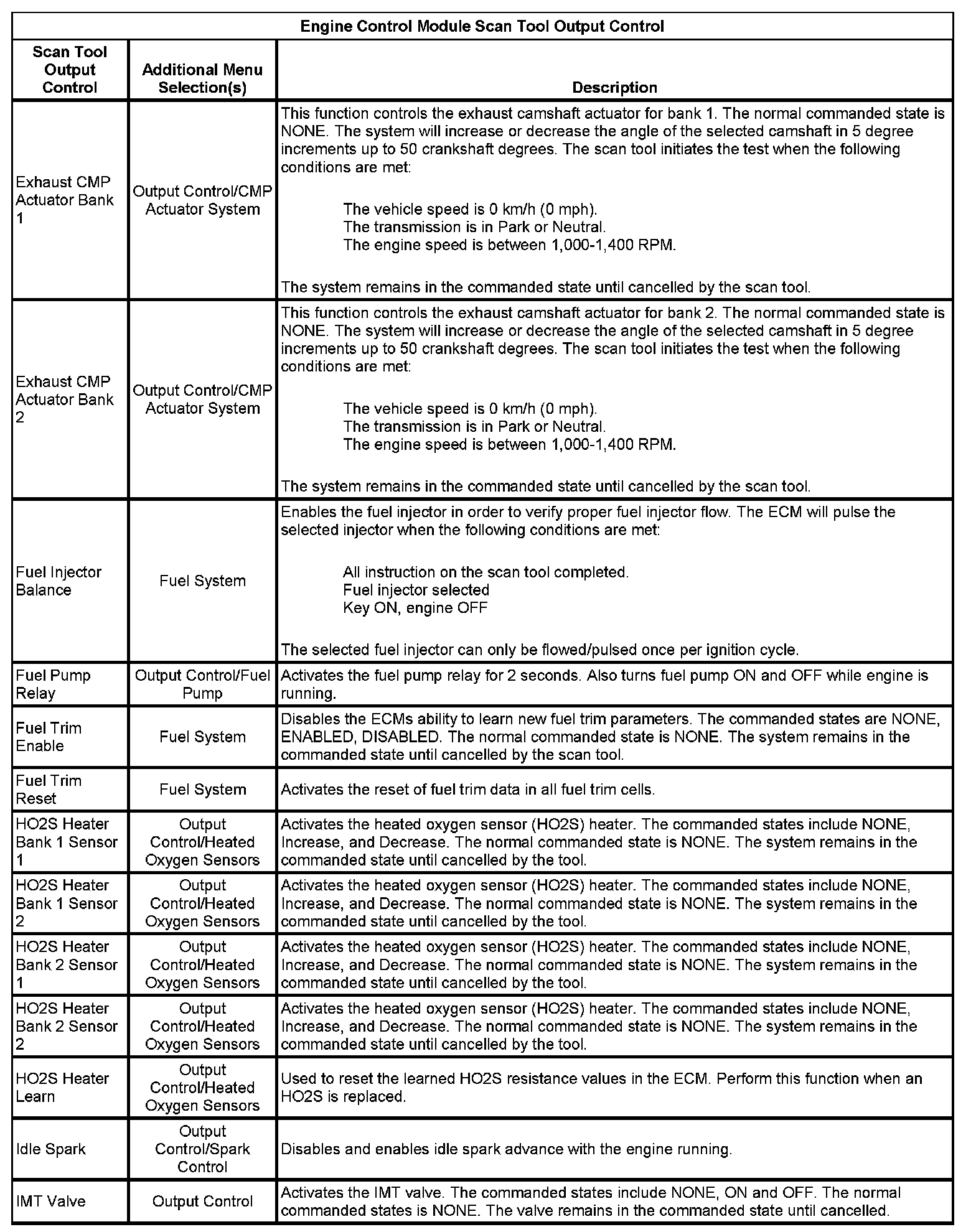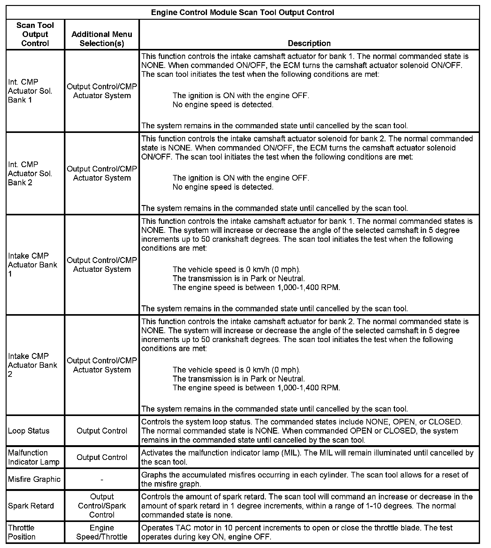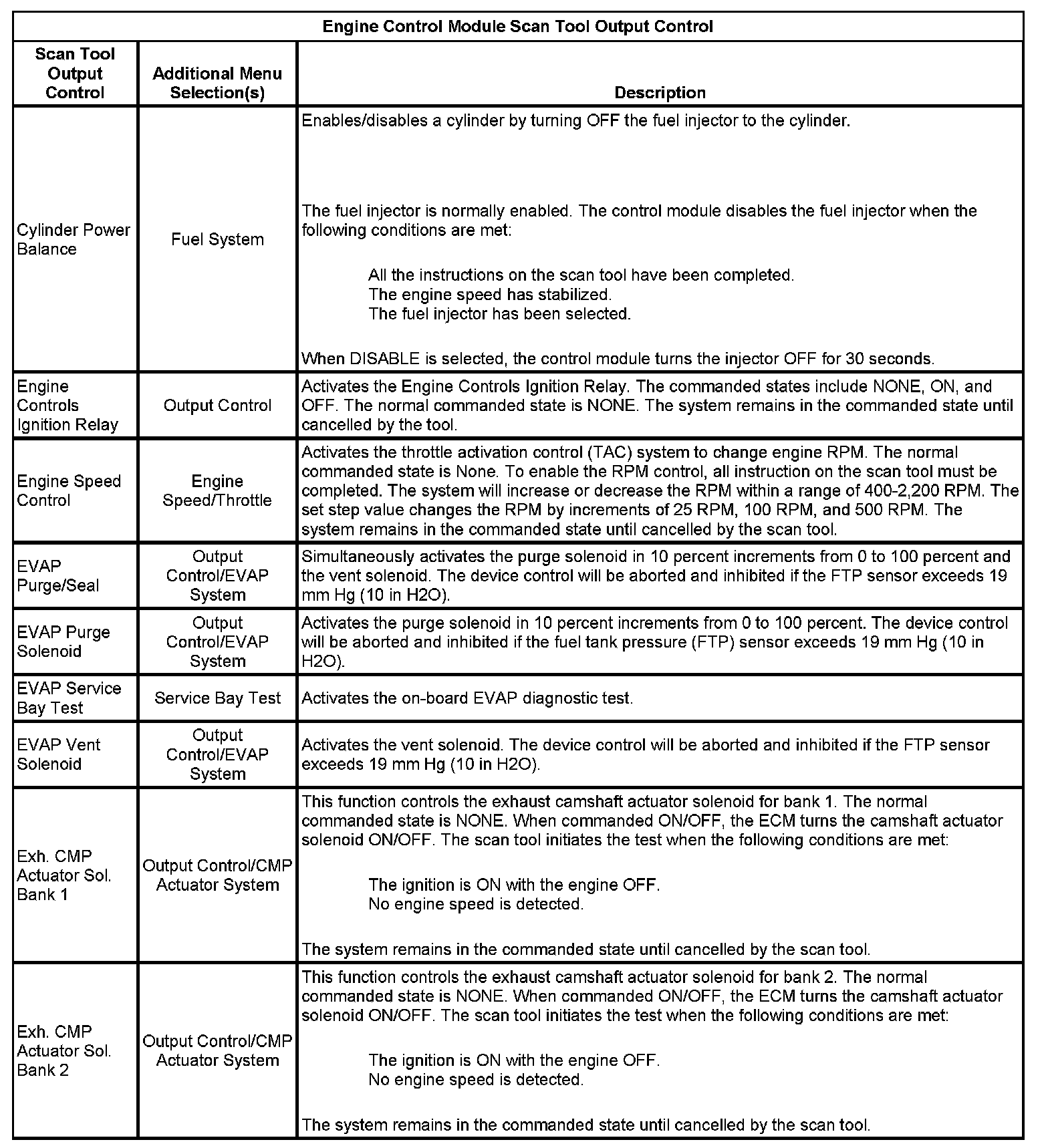 Scan Tool Output Controls