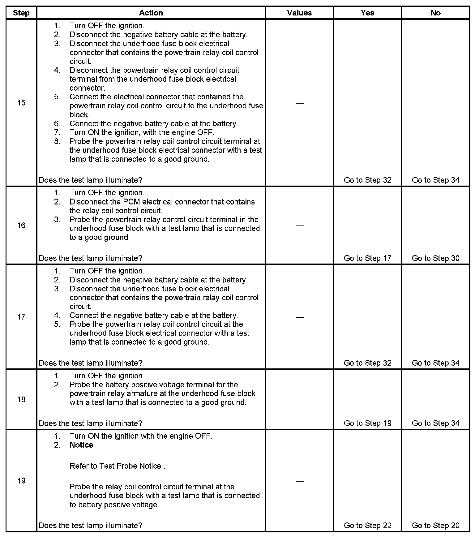 The powertrain relay system diagnosis table assumes that the vehicle battery is fully charged. Refer to Battery Inspection/Test. Battery Inspection/Test