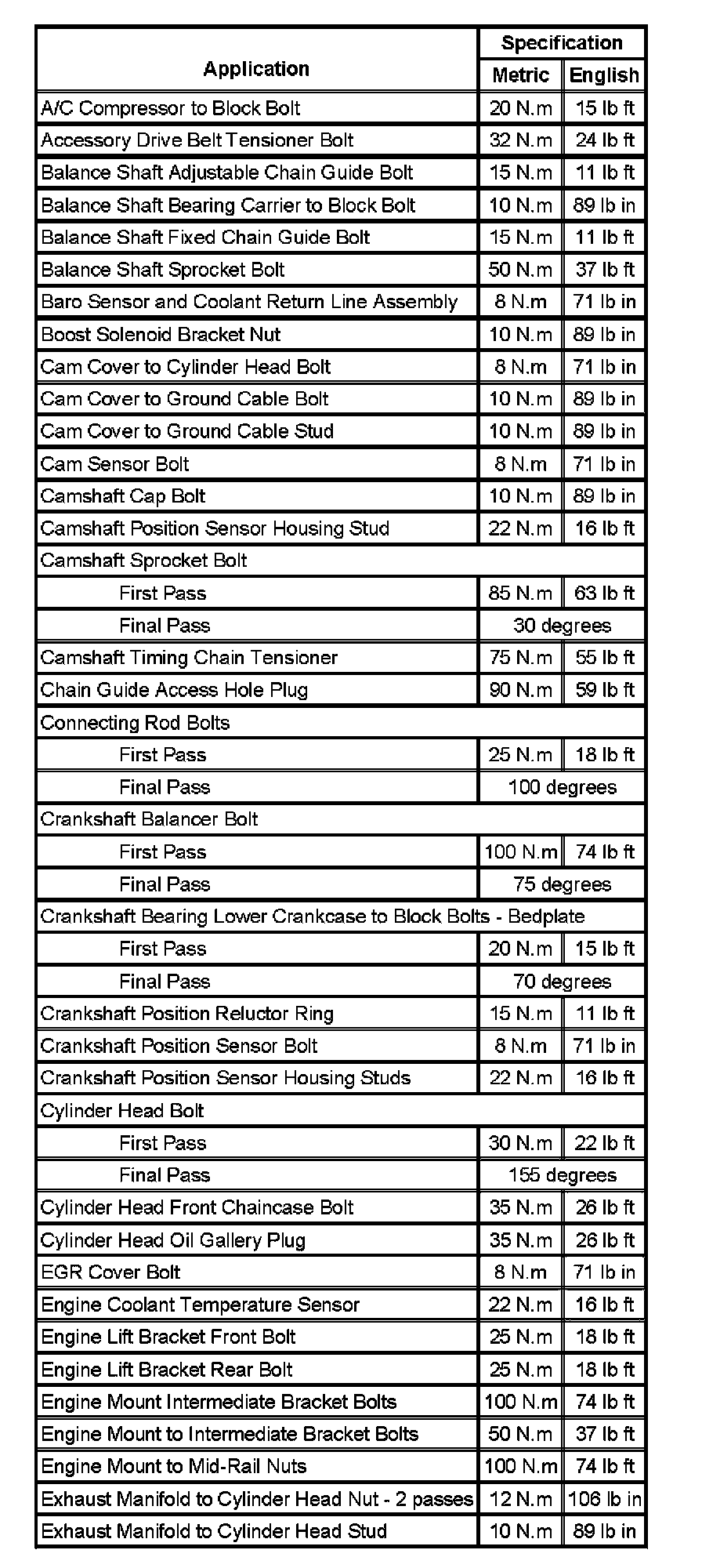 Fastener Tightening Specifications (Part 1):