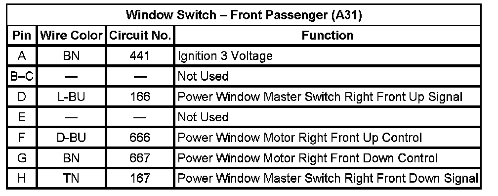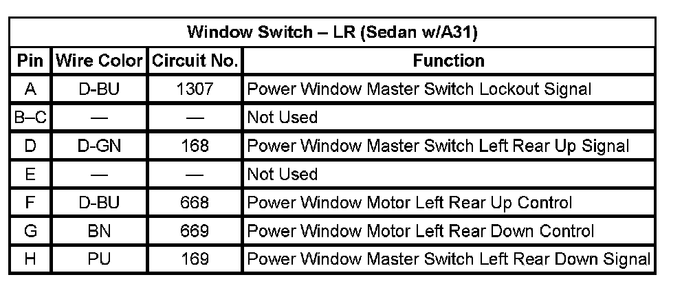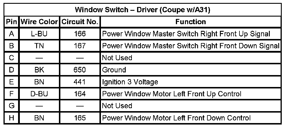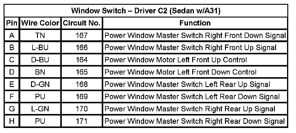 Window Switch - Driver C2 (Sedan With RPO Code A31)