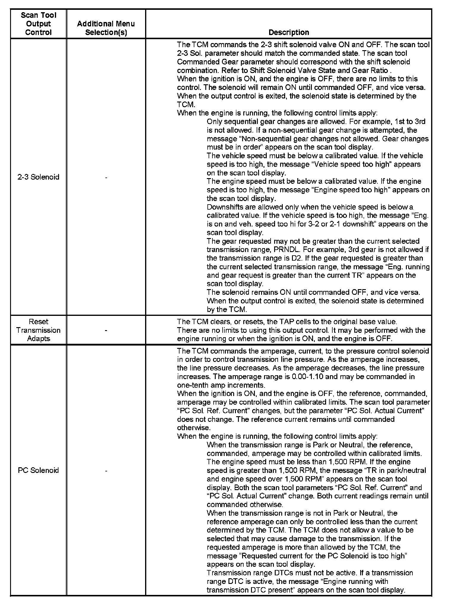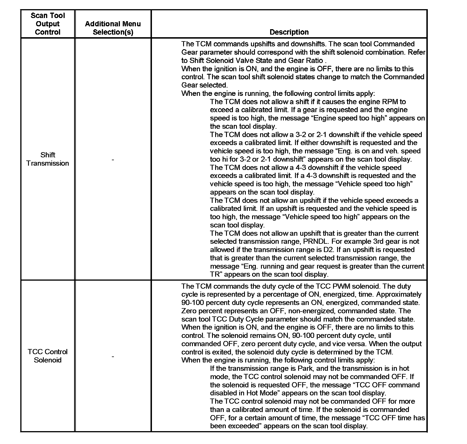 Scan Tool Output Controls