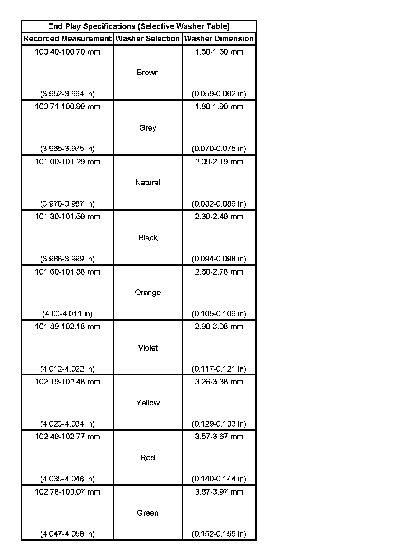 End Play Specifications:
