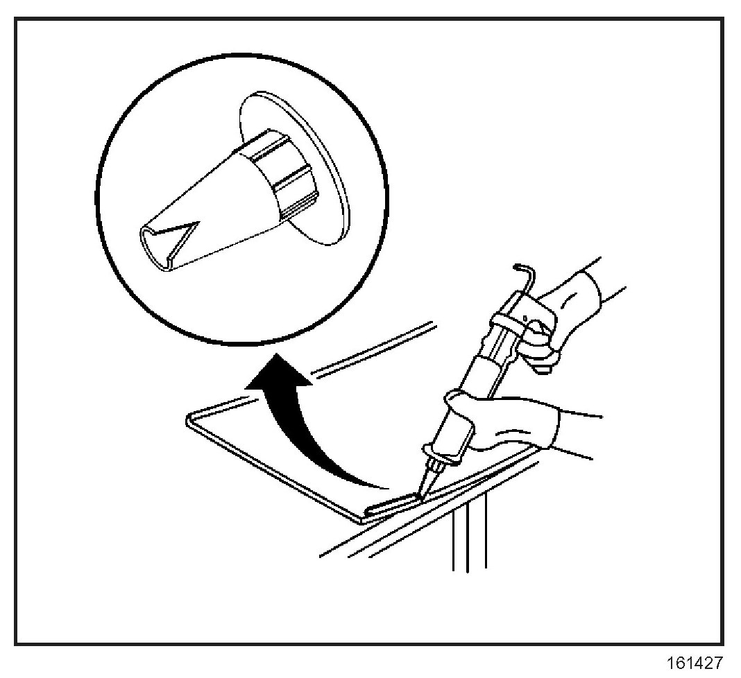 22. Cut the applicator nozzle in order to provide a bead of 12.7 mm (1/2 in) wide and 12.7 mm (1/2 in) high.