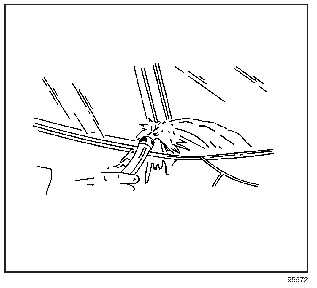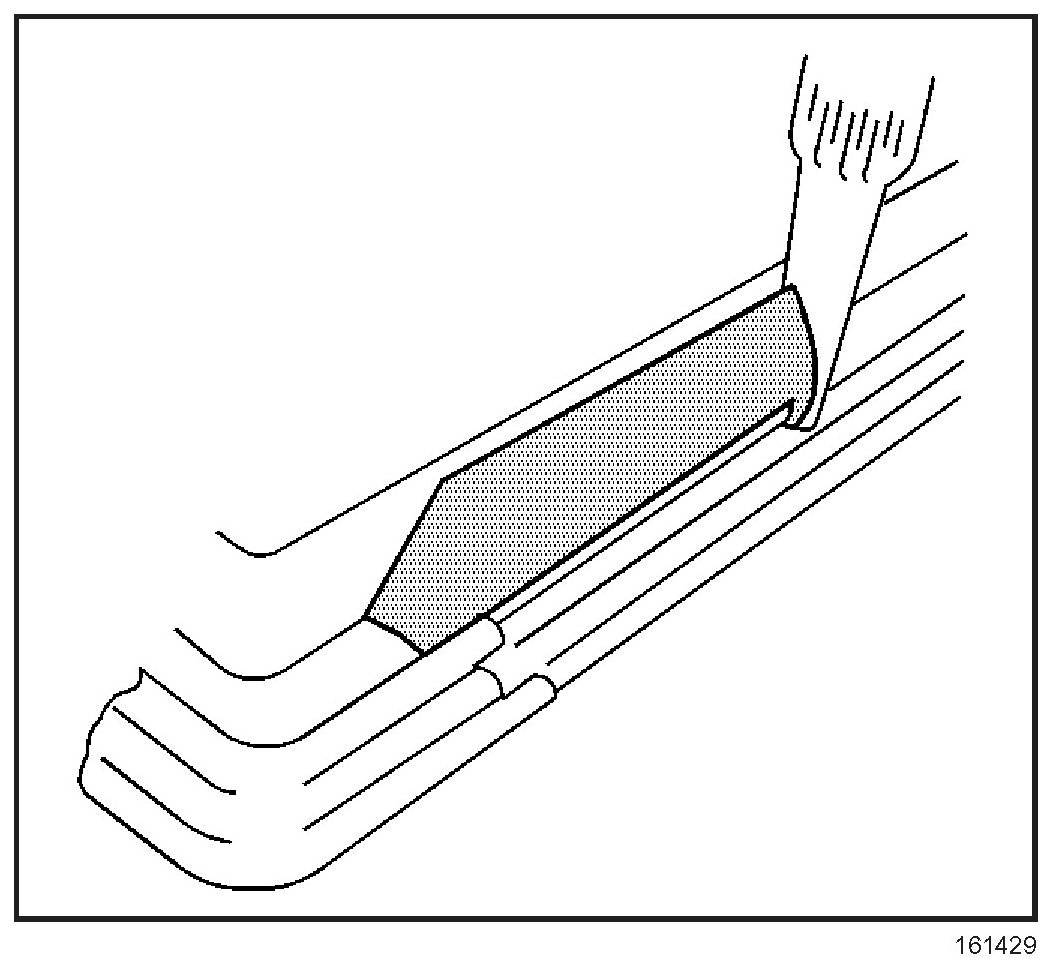 IMPORTANT: Remove all but approximately 2 mm (3/64 in) of the existing bead of urethane adhesive from the pinch-weld flange.