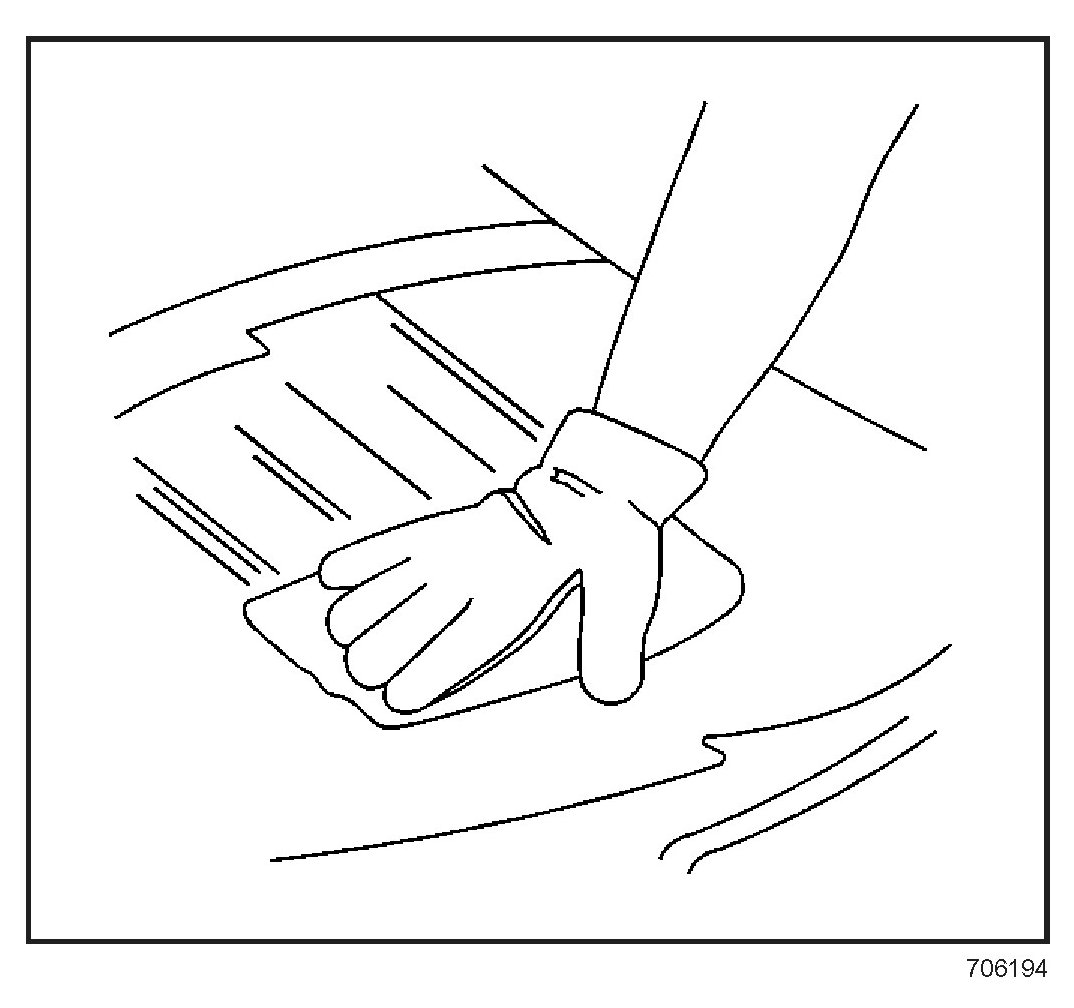CAUTION: Failure to prep the area prior to the application of primer may cause insufficient bonding of urethane adhesive. Insufficient bonding of urethane adhesive may allow unrestrained occupants to be ejected from the vehicle resulting in personal injury.