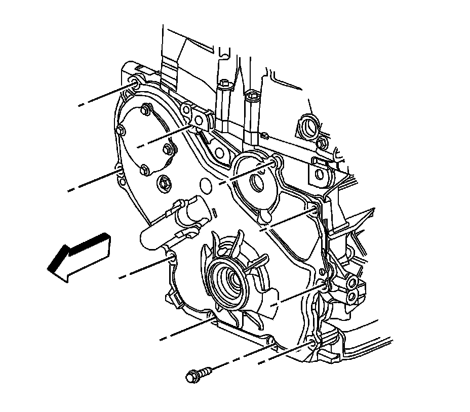 11. Remove the engine front cover to water pump bolt.