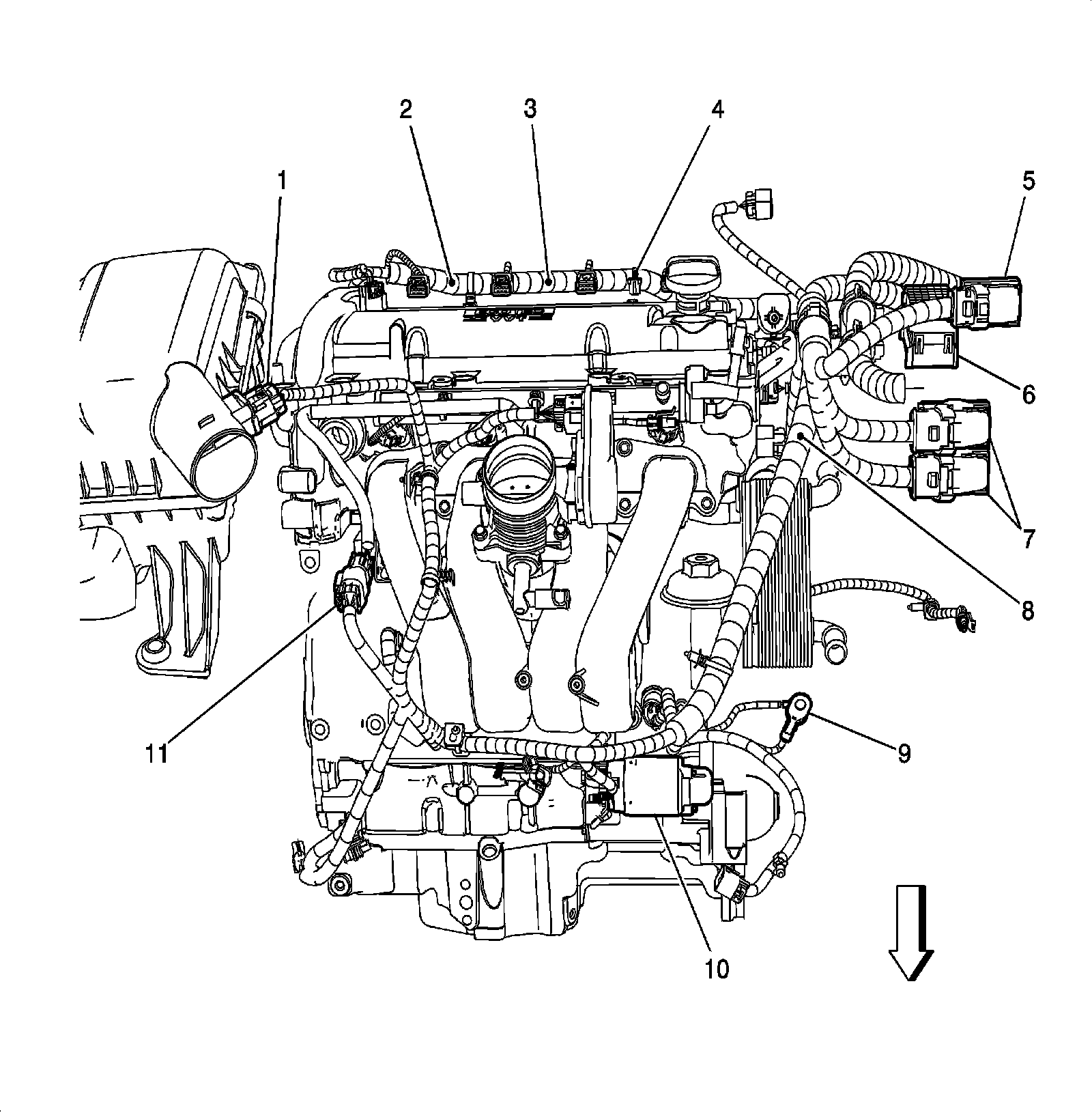 Home >> Saturn >> 2007 >> ION L4-2.4L >> Repair and Diagnosis >> Locations >> Harness Locations >> Engine Compartment Views >> Front of Engine