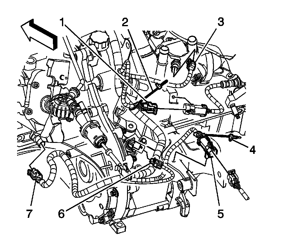 2. If equipped with regular production option (RPO) MN5, disconnect the engine harness electrical connector (3) from the engine coolant temperature (ECT) sensor.