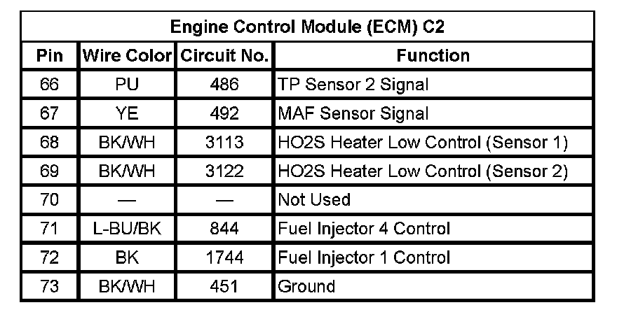 Engine Control Module (ECM) C2 (Pin 66 To 73):