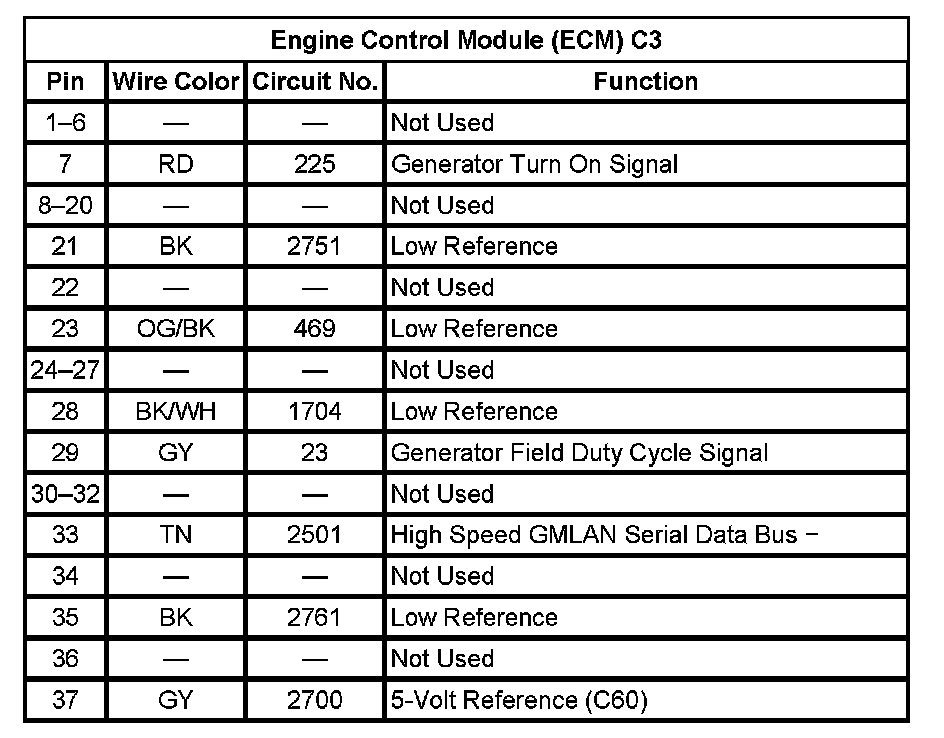 Engine Control Module (ECM) C1 (Pin 20 To 56):