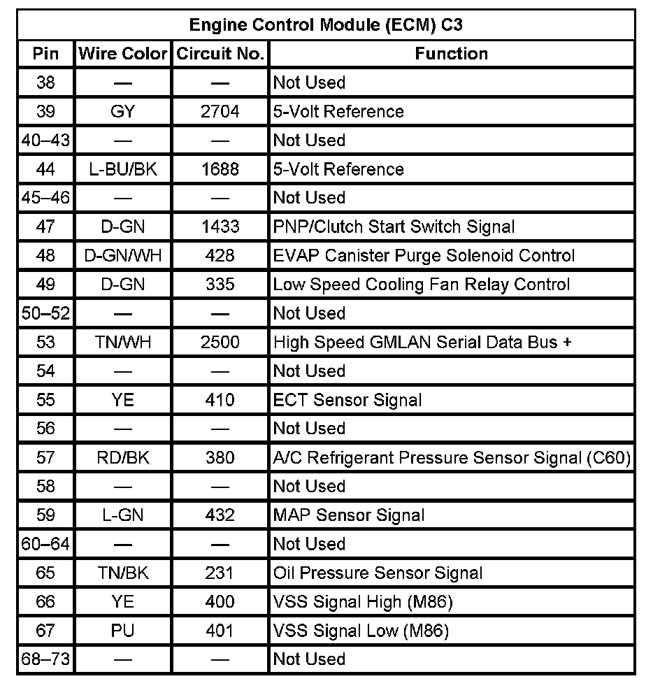 Engine Control Module (ECM) C2 (Pin 12 To 65):