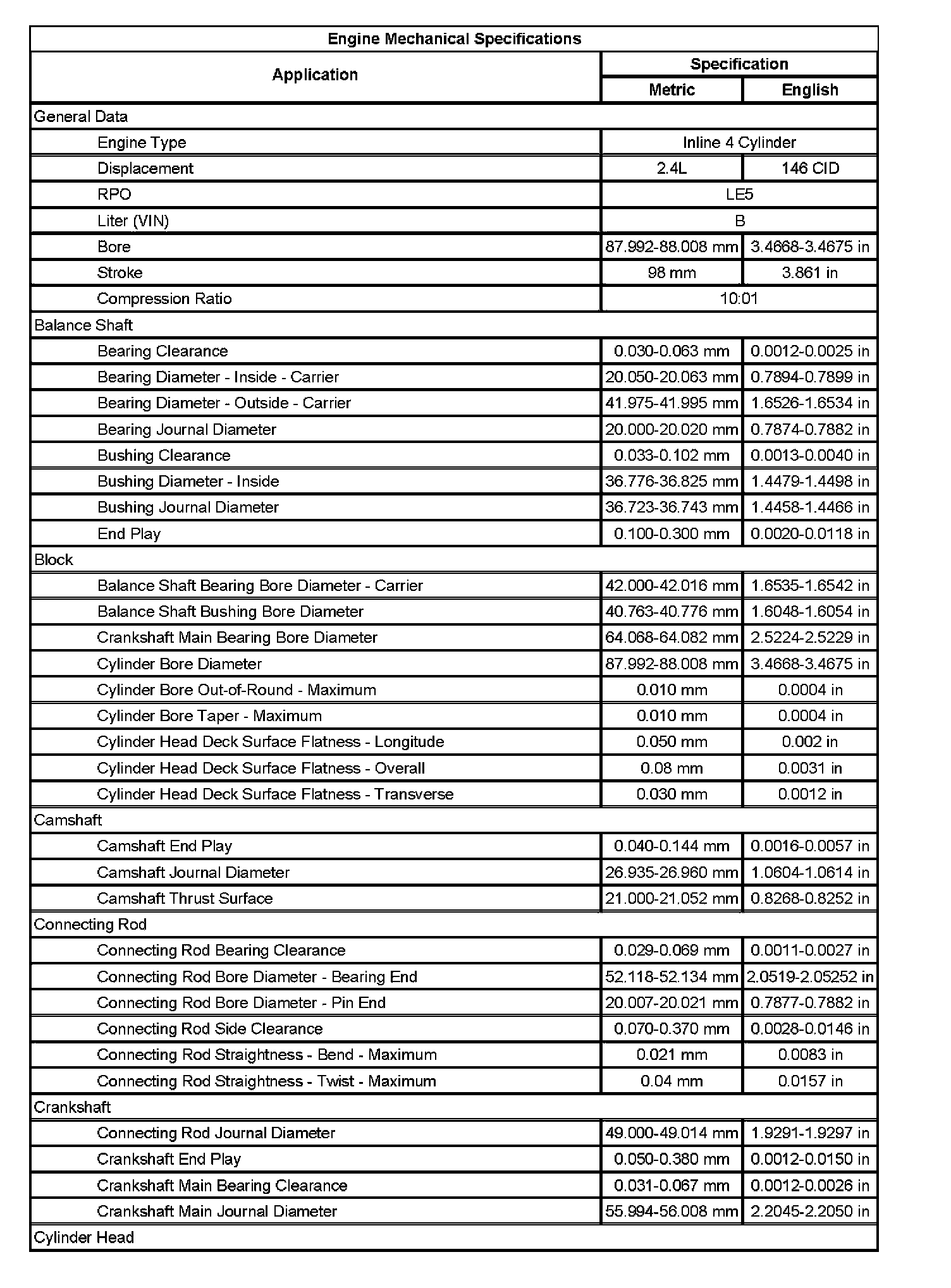 Engine Mechanical Specifications (Part 2):