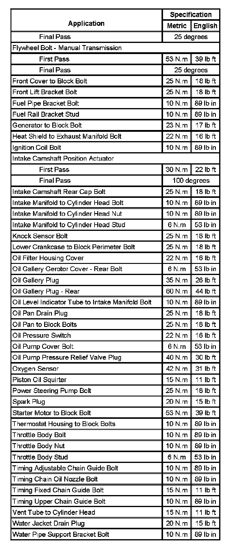 Fastener Tightening Specifications (Part 1):