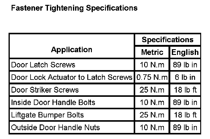 Fastener Tightening Specifications: