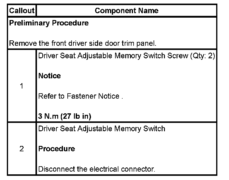 DRIVER SEAT ADJUSTER MEMORY SWITCH REPLACEMENT