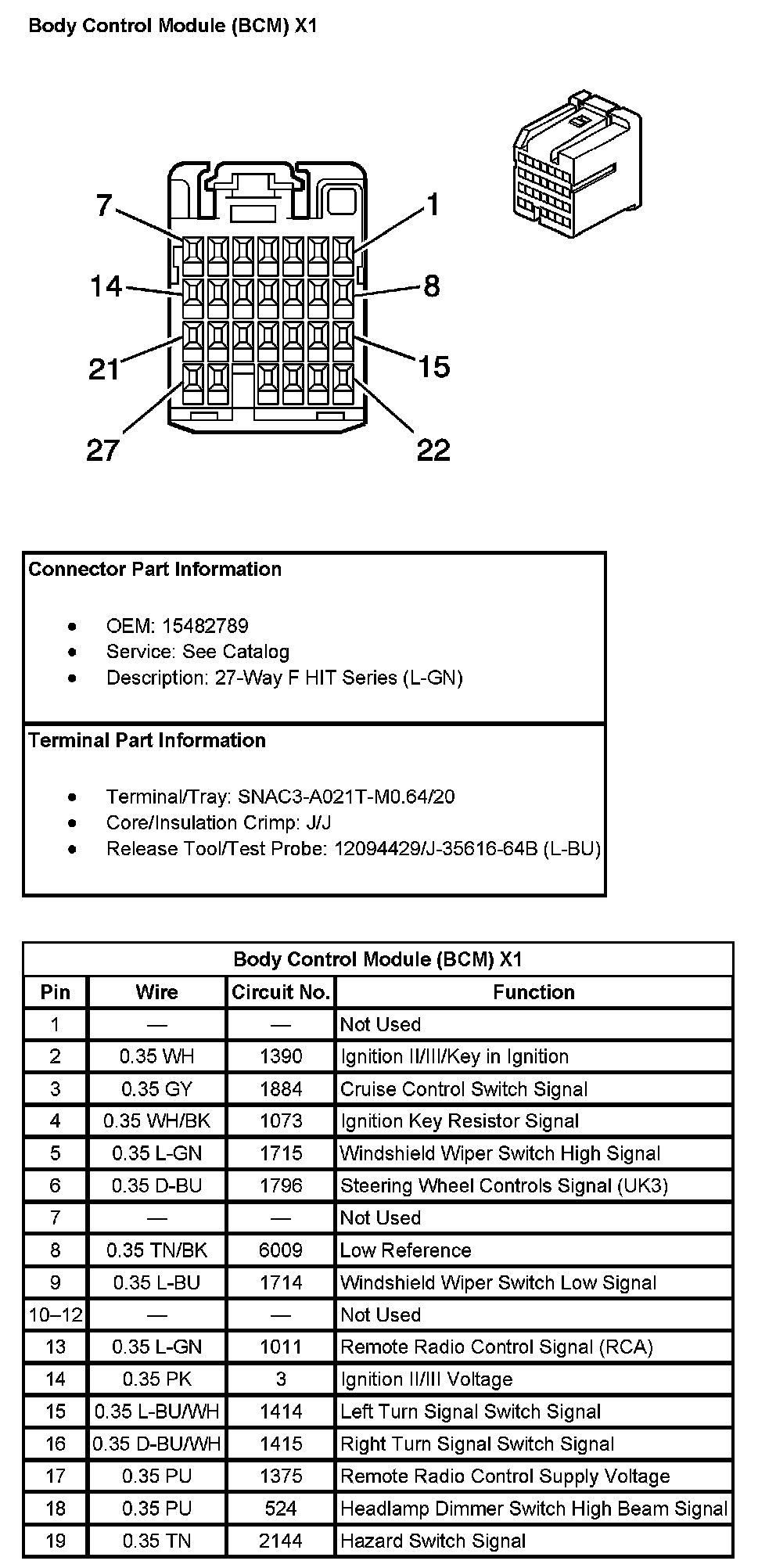 Body Control Module (BCM) X1 (Pin 1 To 19):