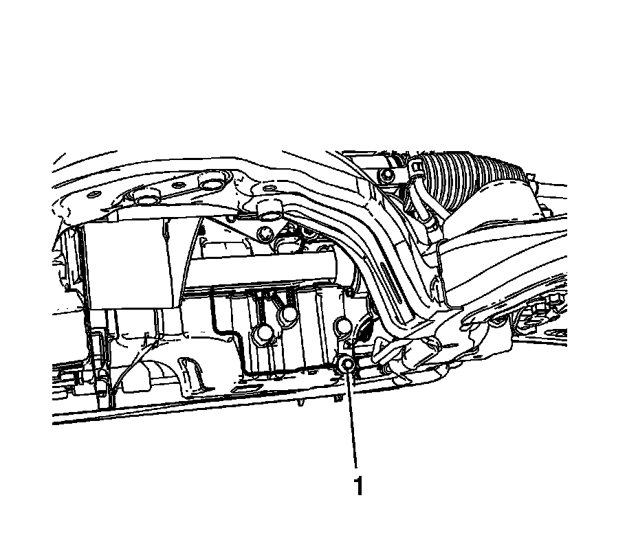 3. Remove the oil pan drain plug (1). Allow the oil to drain completely.