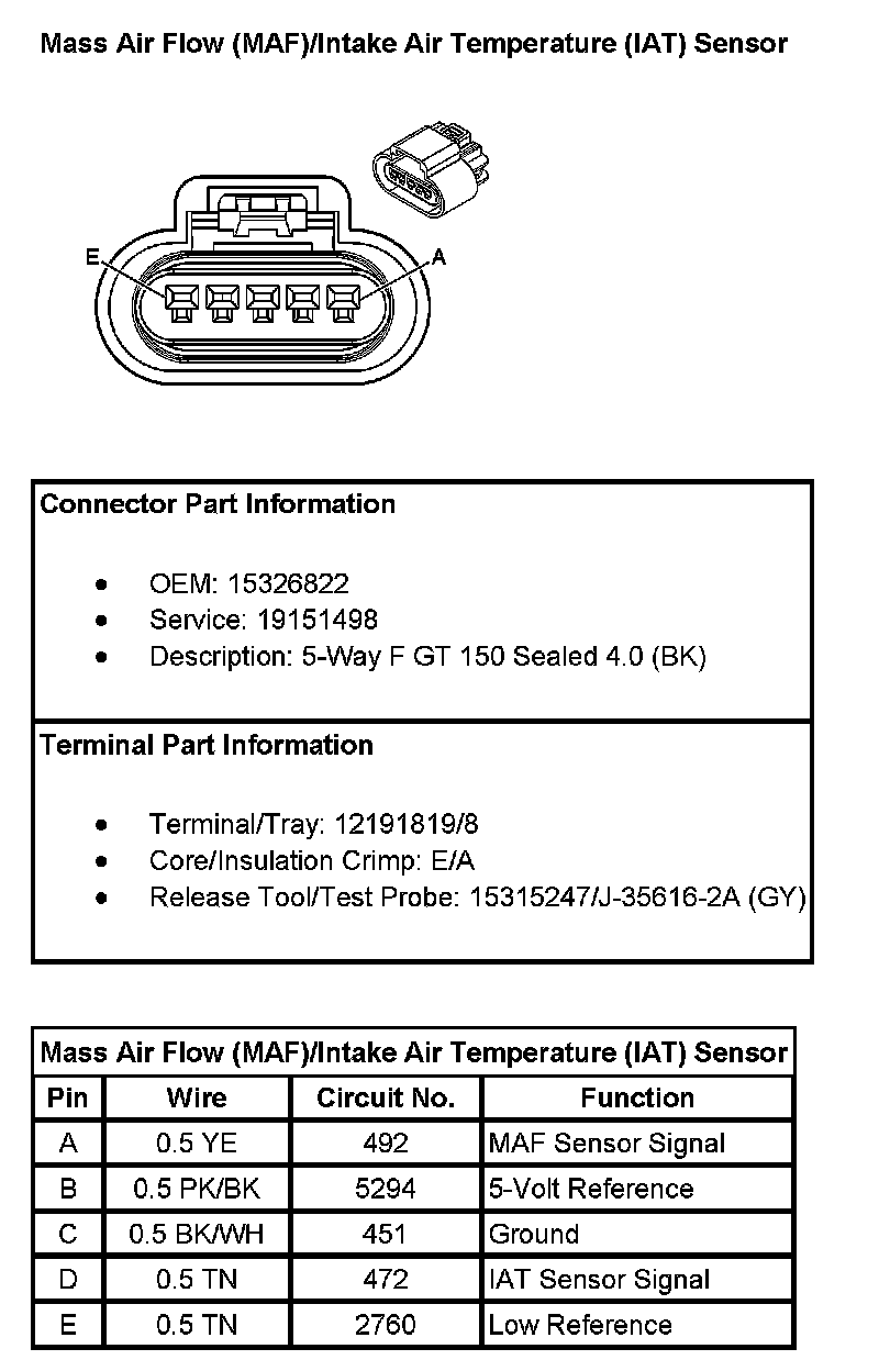 Mass Air Flow (MAF)/Intake Air Temperature (IAT) Sensor: