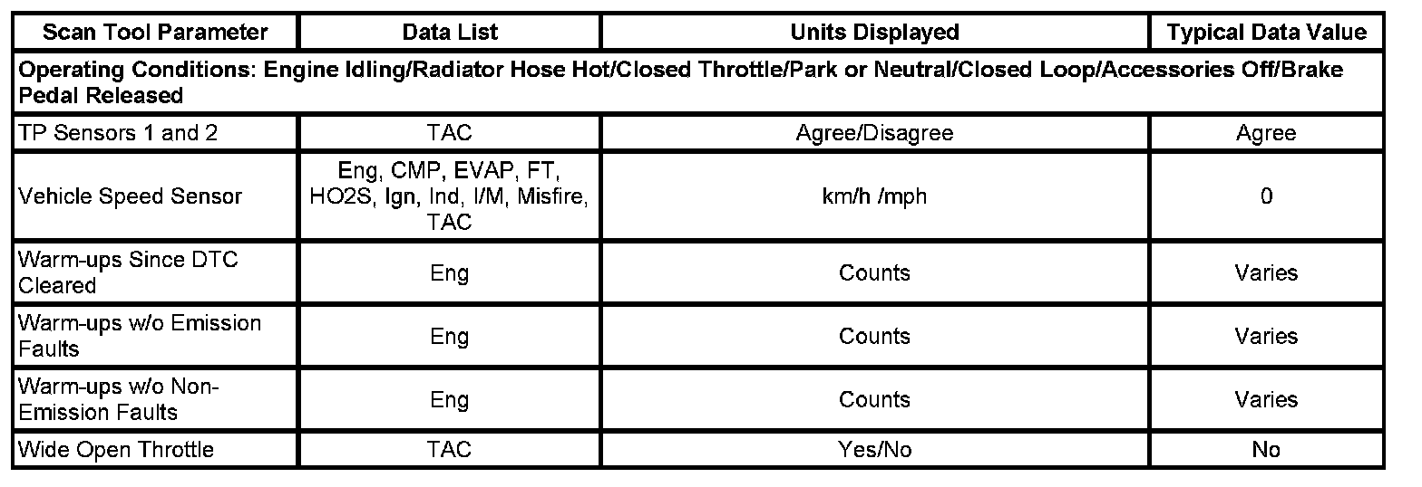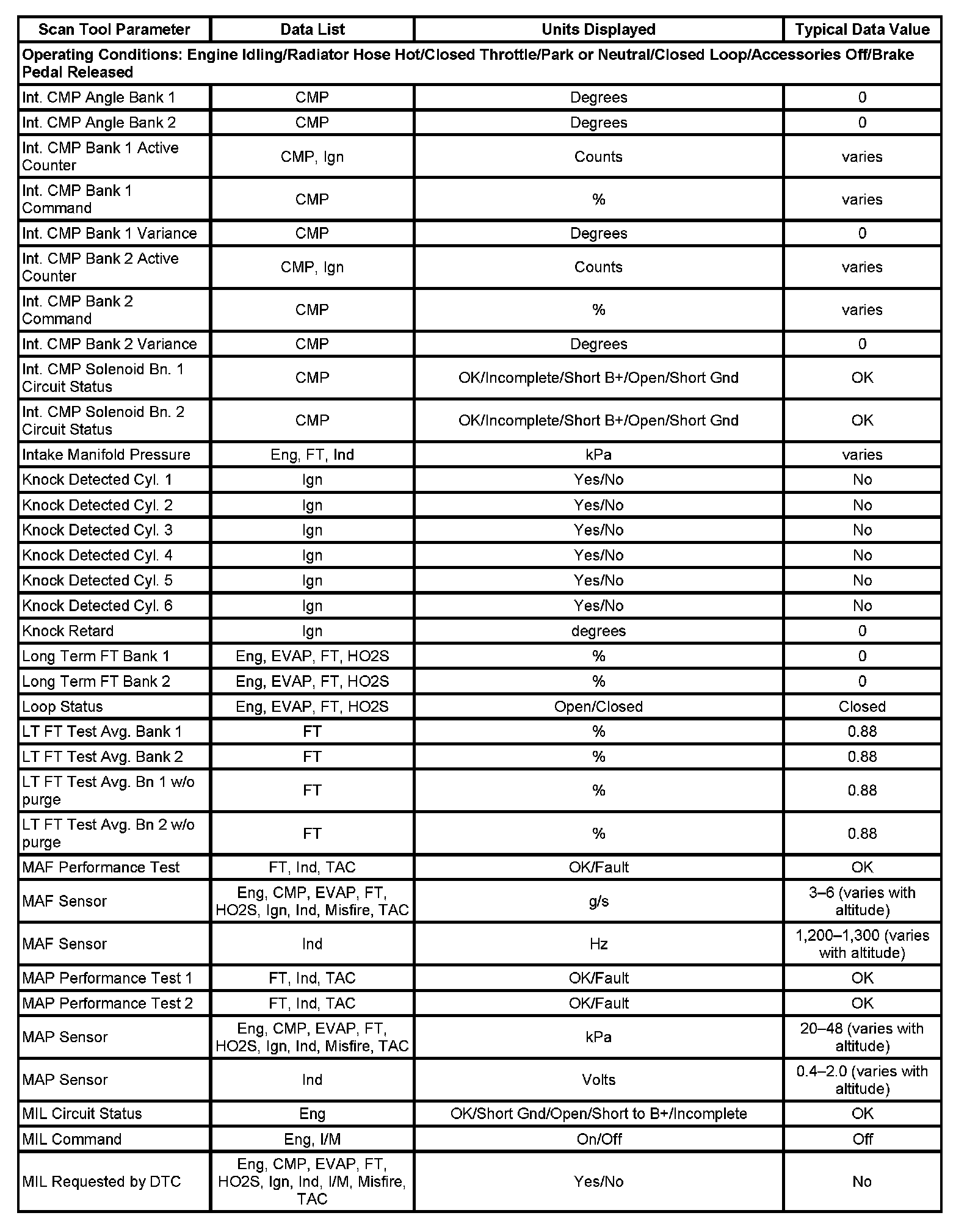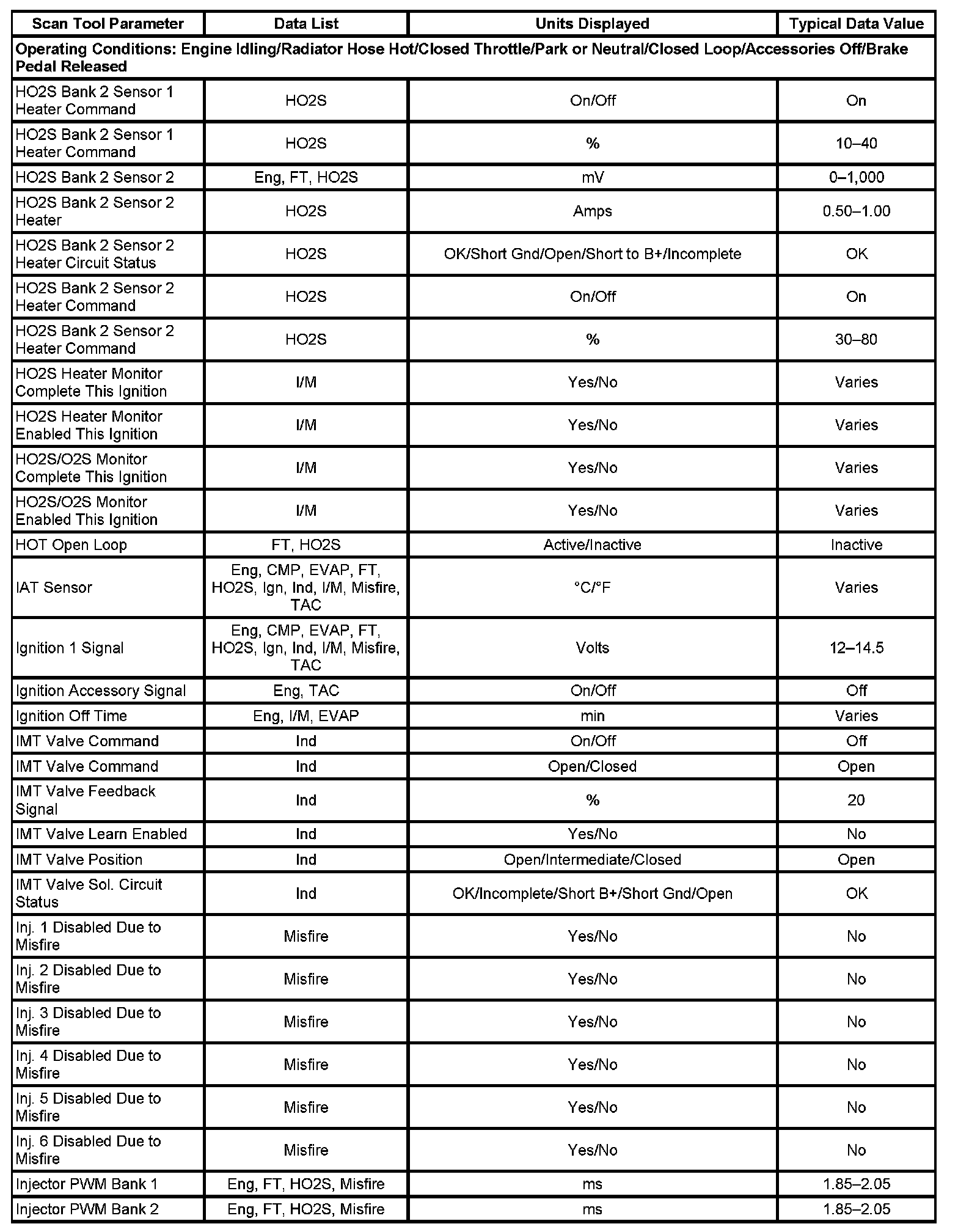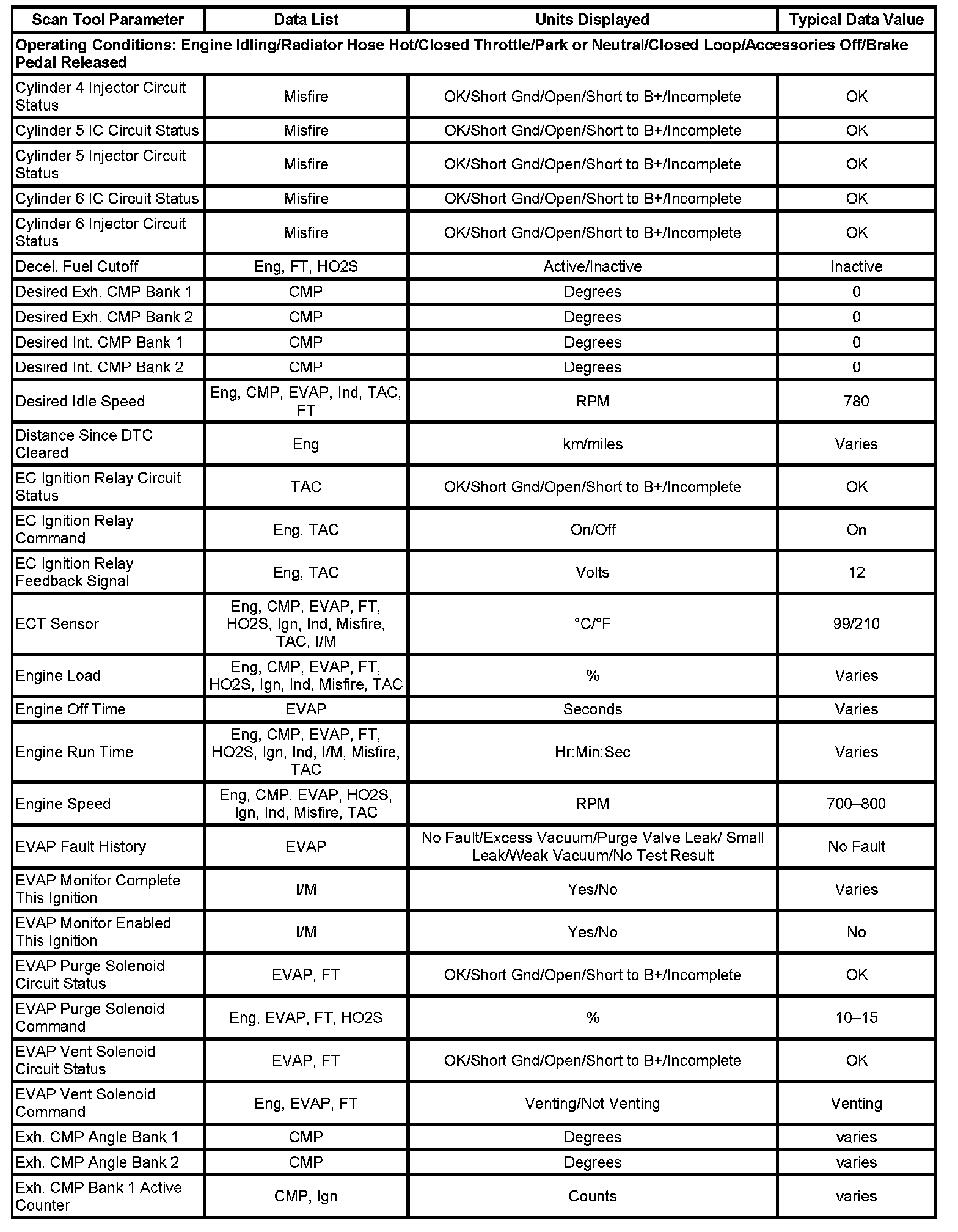 The Engine Scan Tool Data List contains all engine controls-related parameters that are available on the scan tool. The list is arranged in alphabetical order. A given parameter may appear in any one of the data lists, and in some cases may appear more than once, or in more than one data list in order to group certain related parameters together.