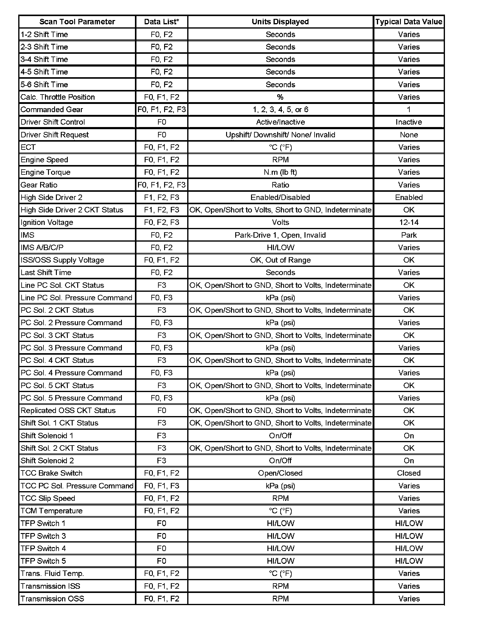 Home >> Saturn >> 2007 >> Outlook V6-3.6L >> Repair and Diagnosis >> Powertrain Management >> Transmission Control Systems >> Testing and Inspection >> Scan Tool Data List