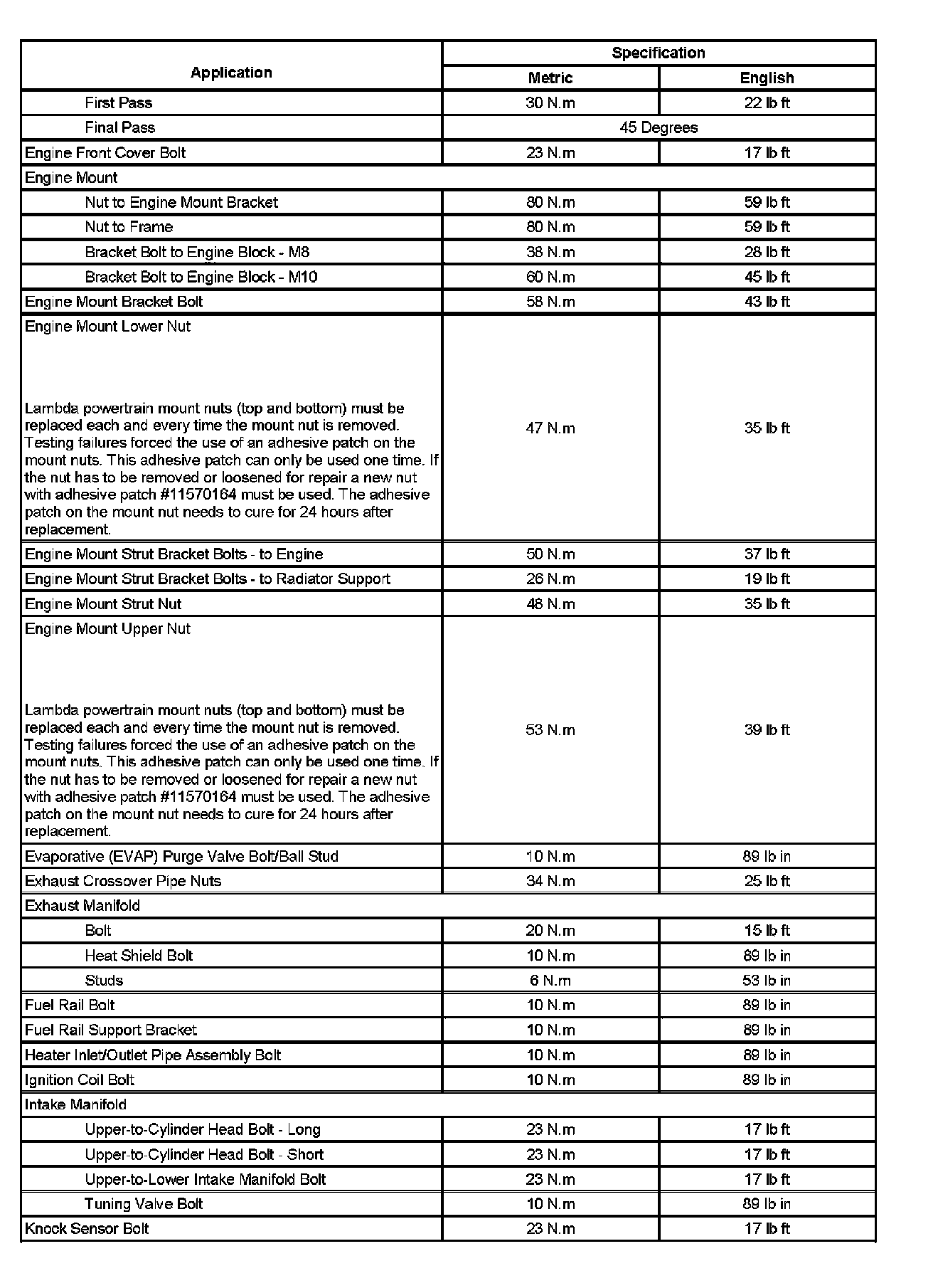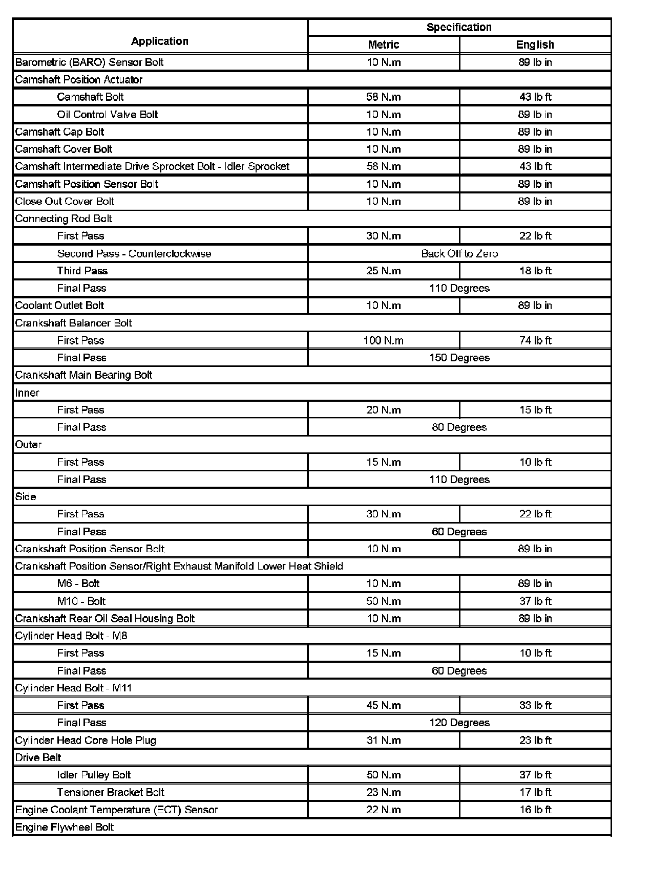 Fastener Tightening Specifications (Part 1):