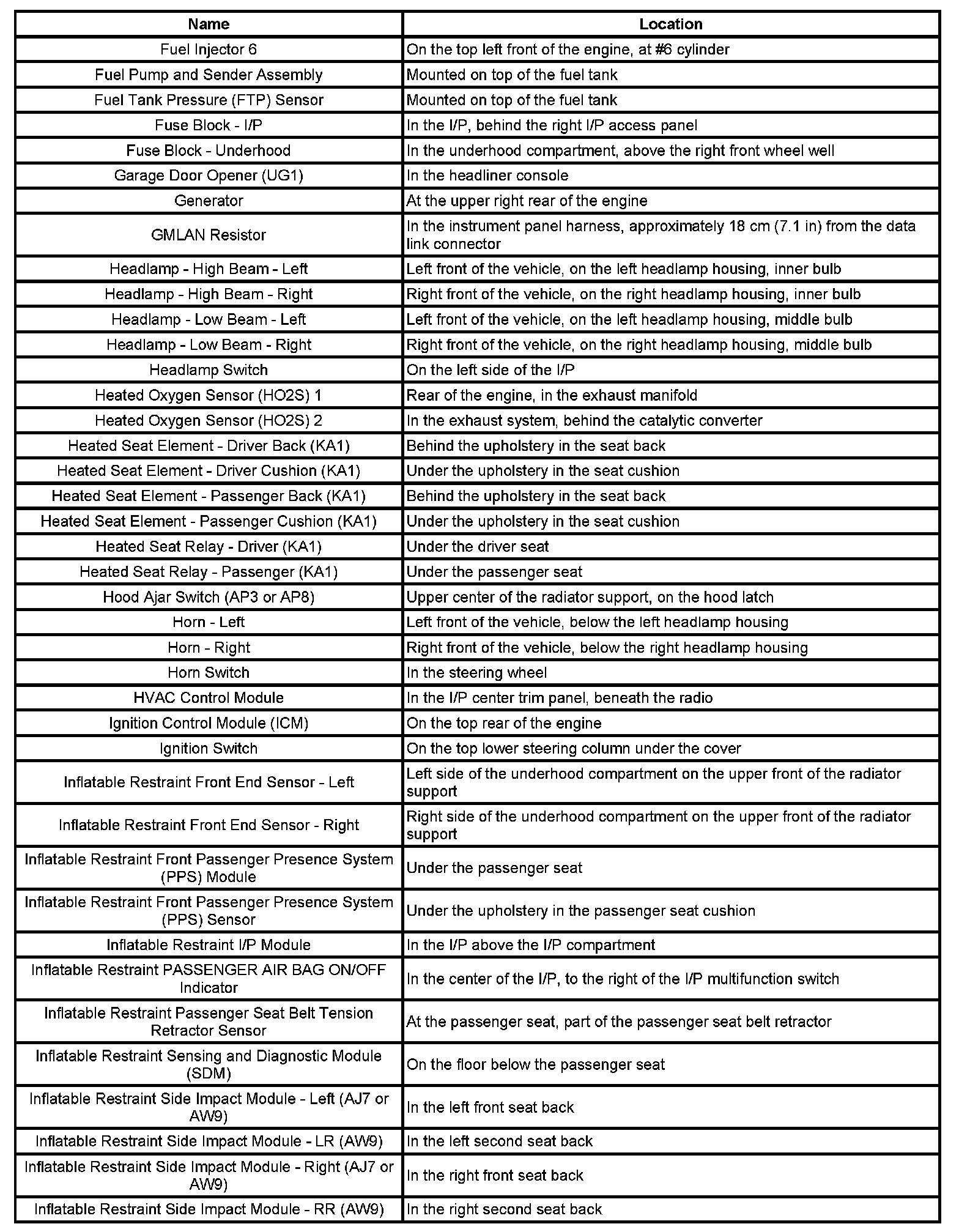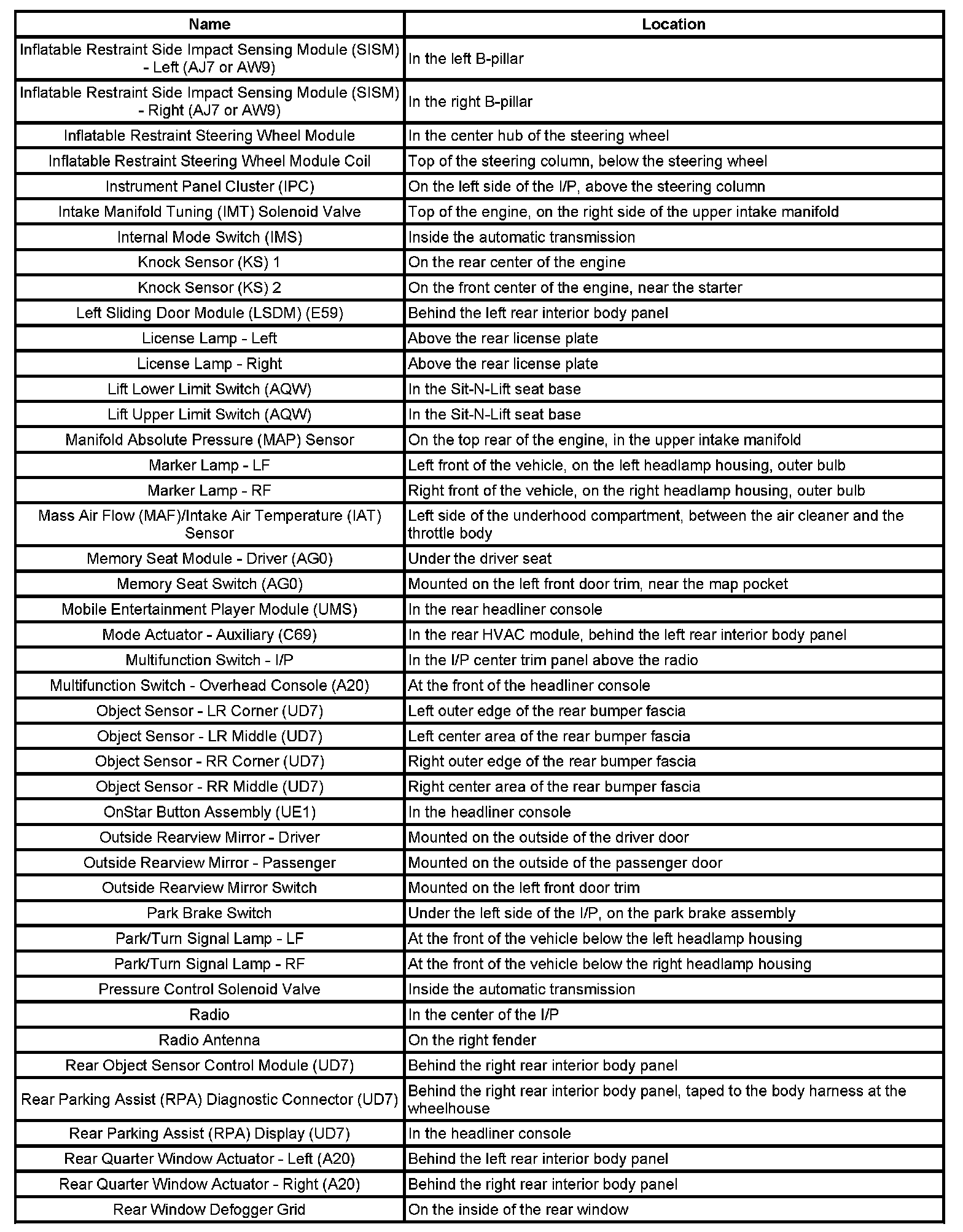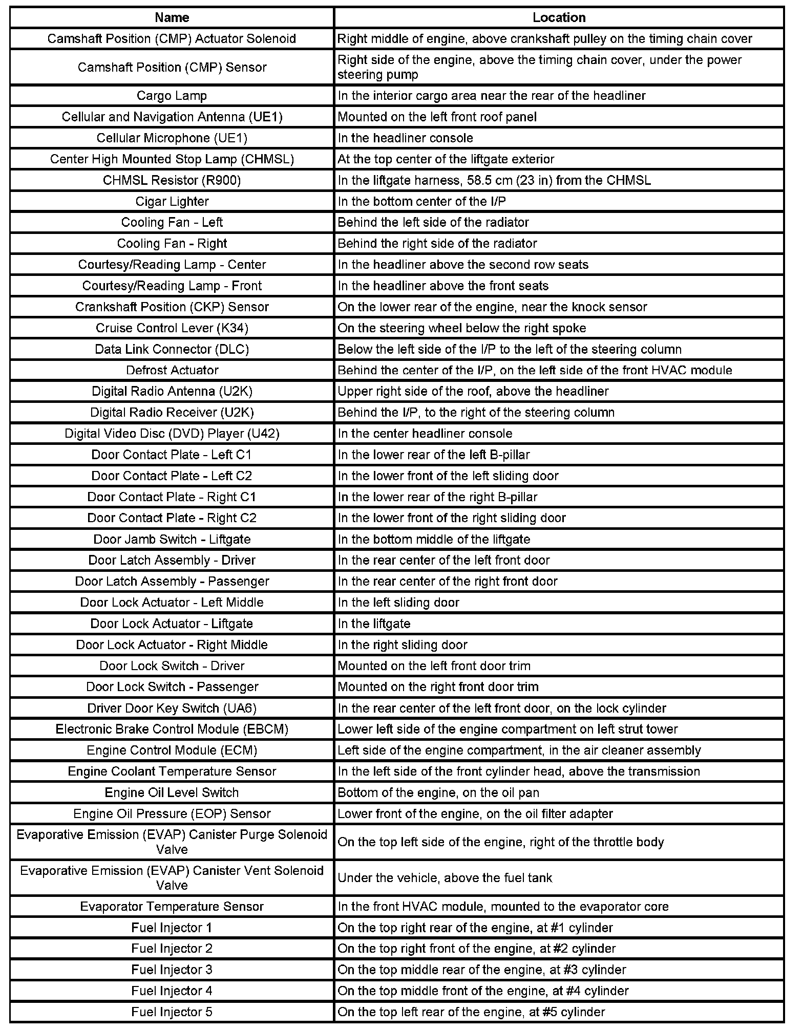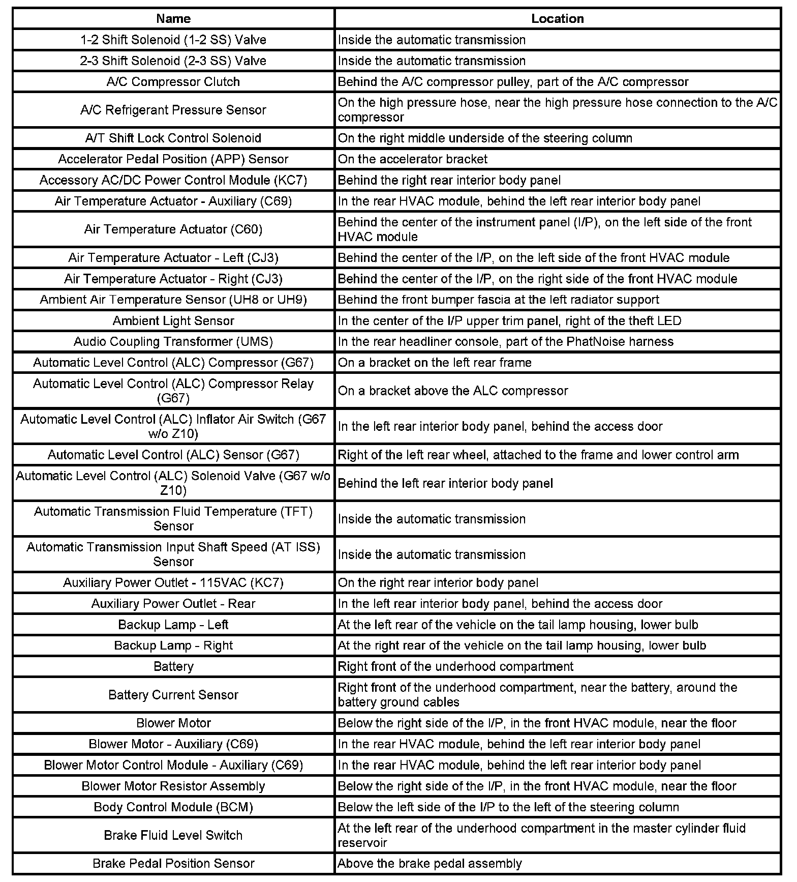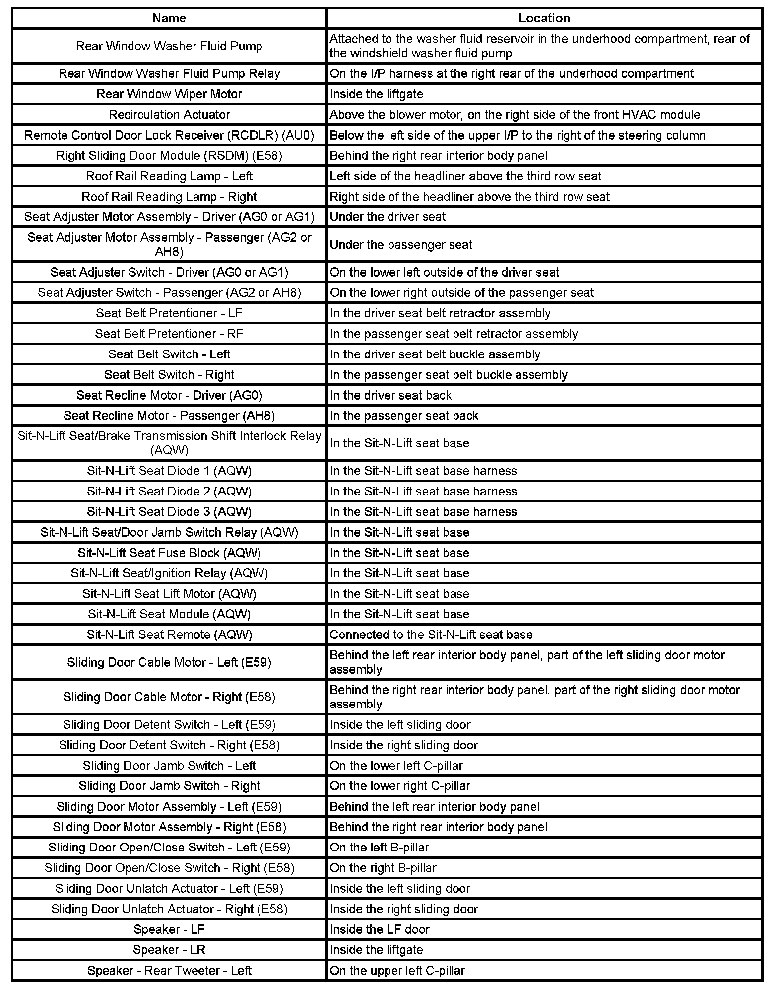 Master Electrical Component List