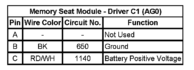 Memory Seat Module - Driver C1 (AG0)