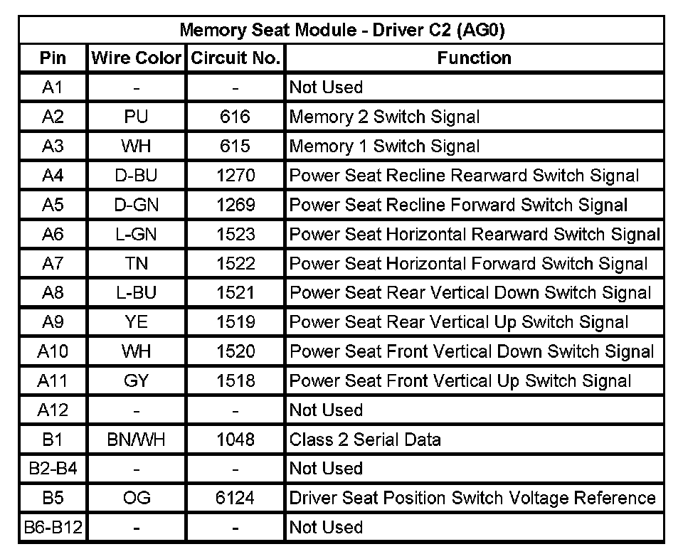 Memory Seat Module - Driver C2 (AG0)