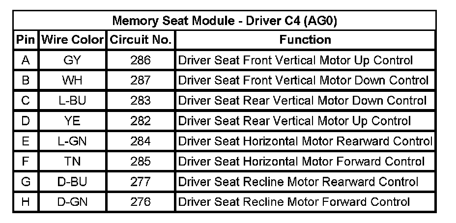 Memory Seat Module - Driver C4 (AG0)