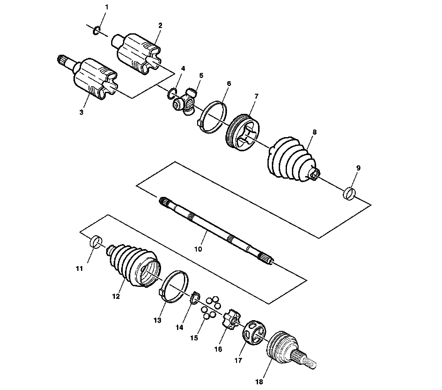 Wheel Drive Shafts Disassembled Views (Delphi - Front)