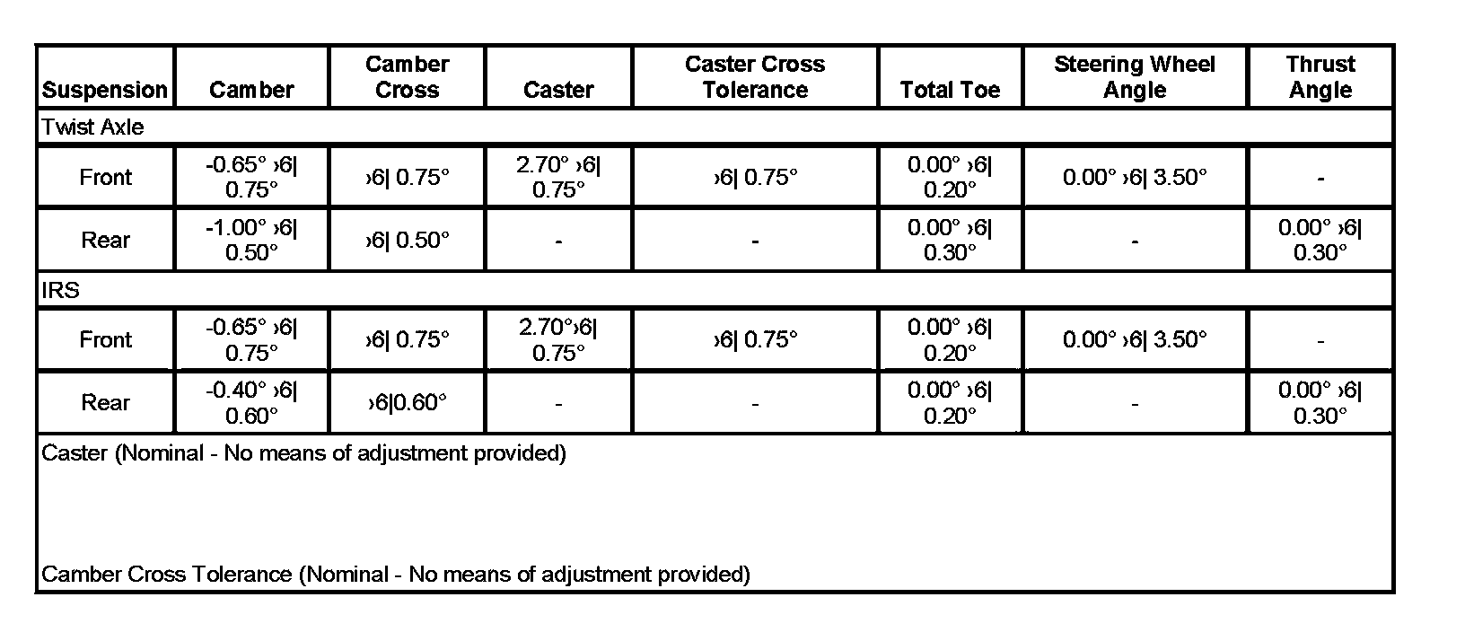 Wheel Alignment Specifications