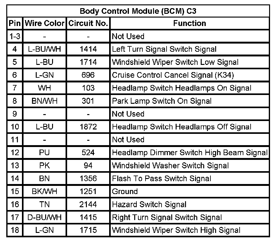 Body Control Module (BCM) C1 (Pin 46 To 52):