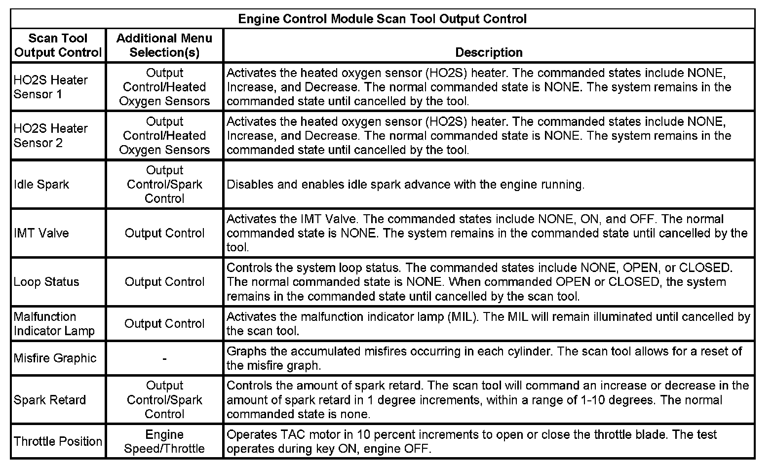 Scan Tool Output Controls