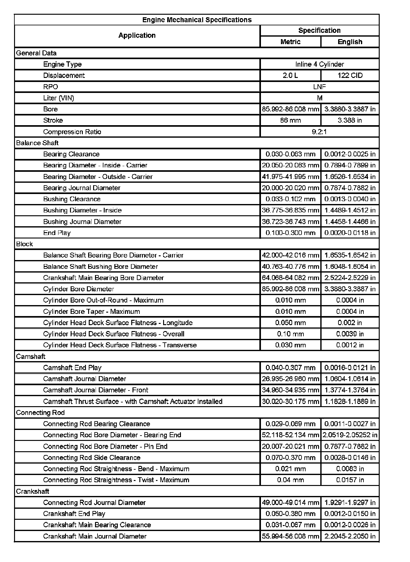 Engine Mechanical Specifications (Part 2):