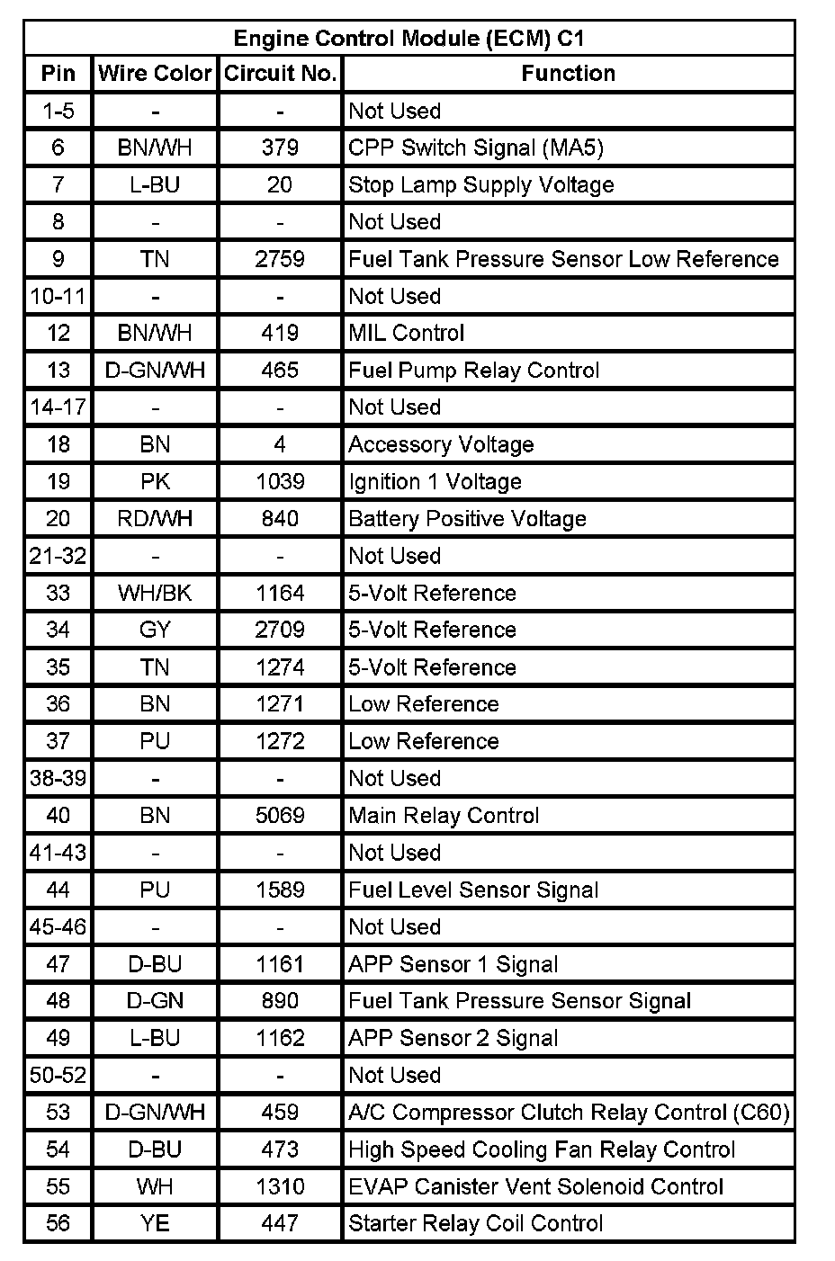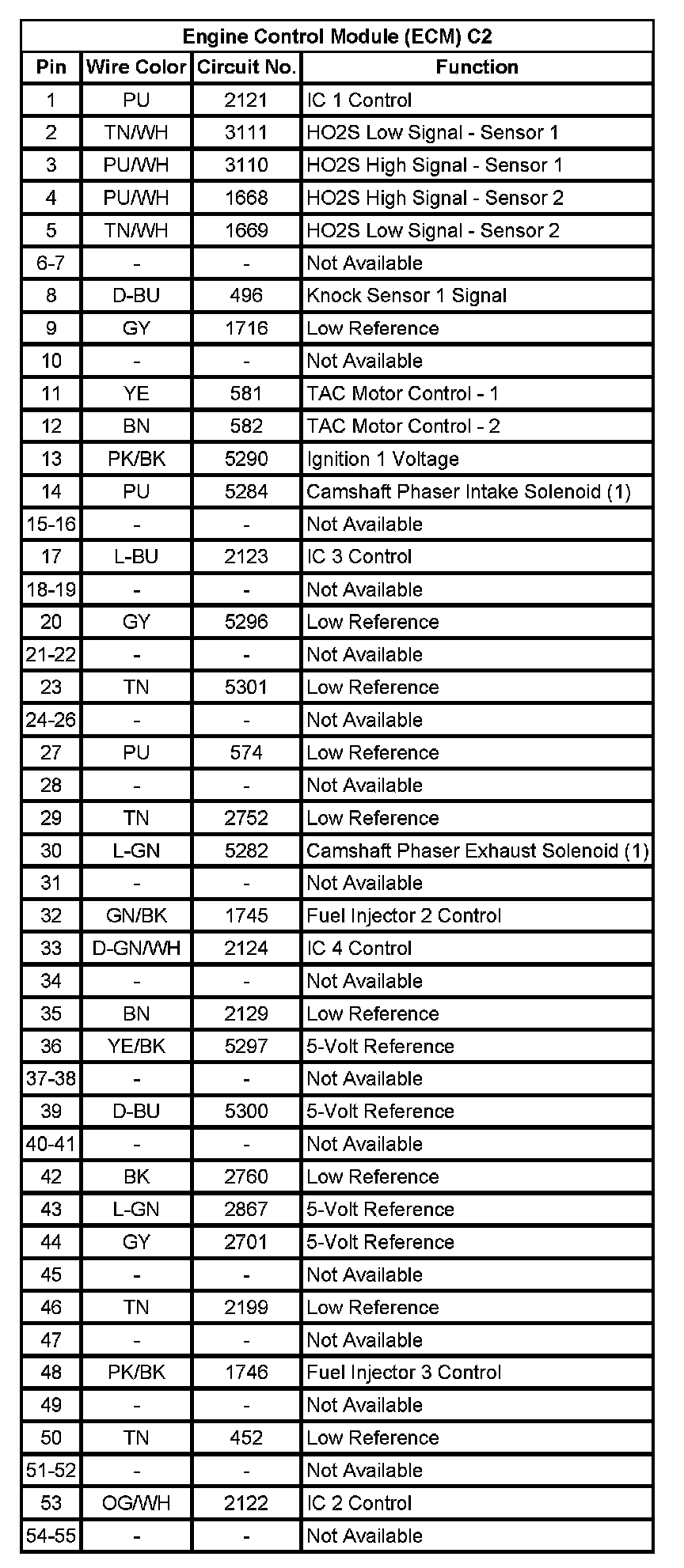 Engine Control Module (ECM) C2 (Pin 1 To 55):