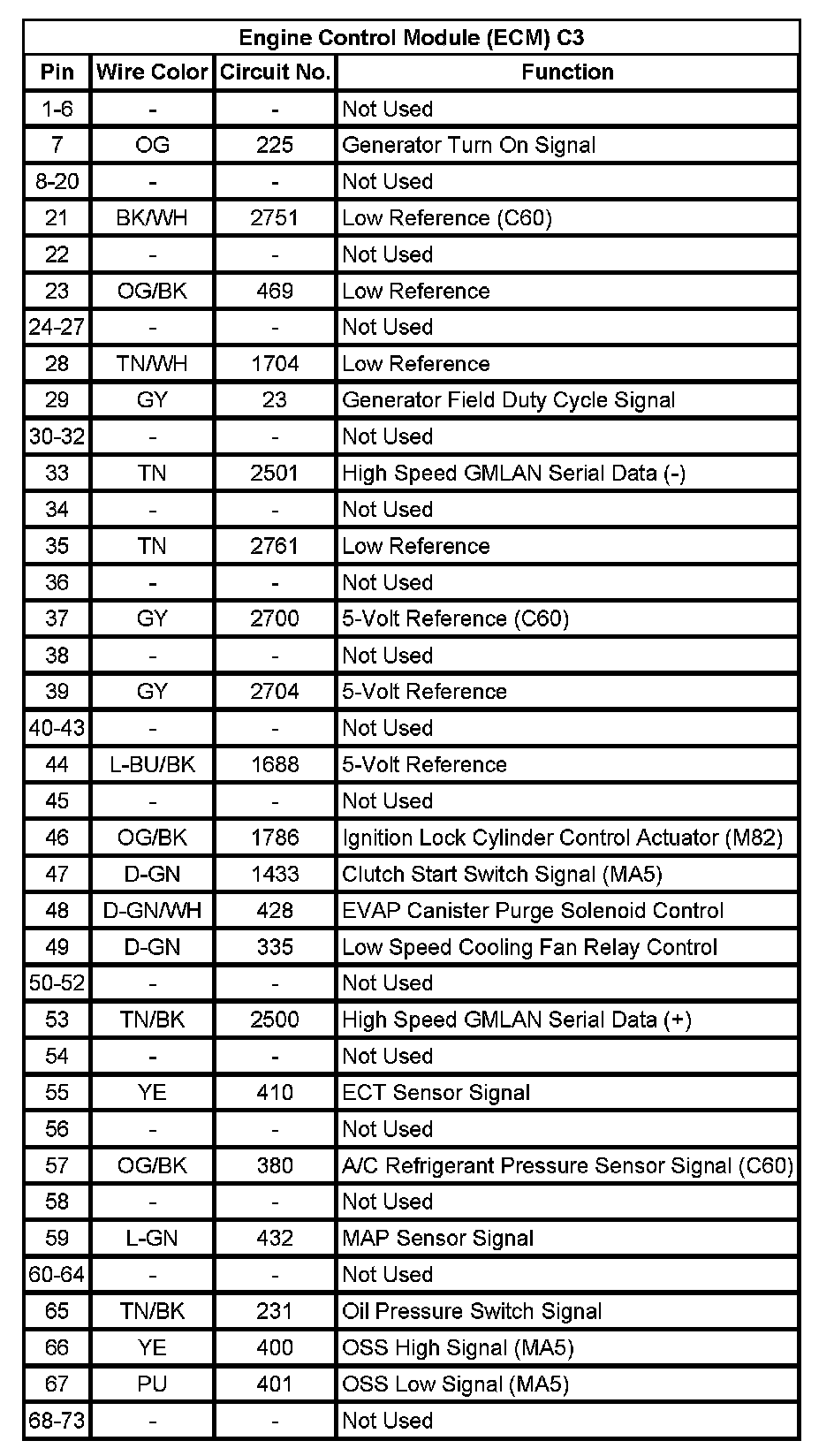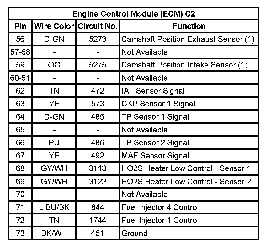 Engine Control Module (ECM) C2 (Pin 56 To 73):