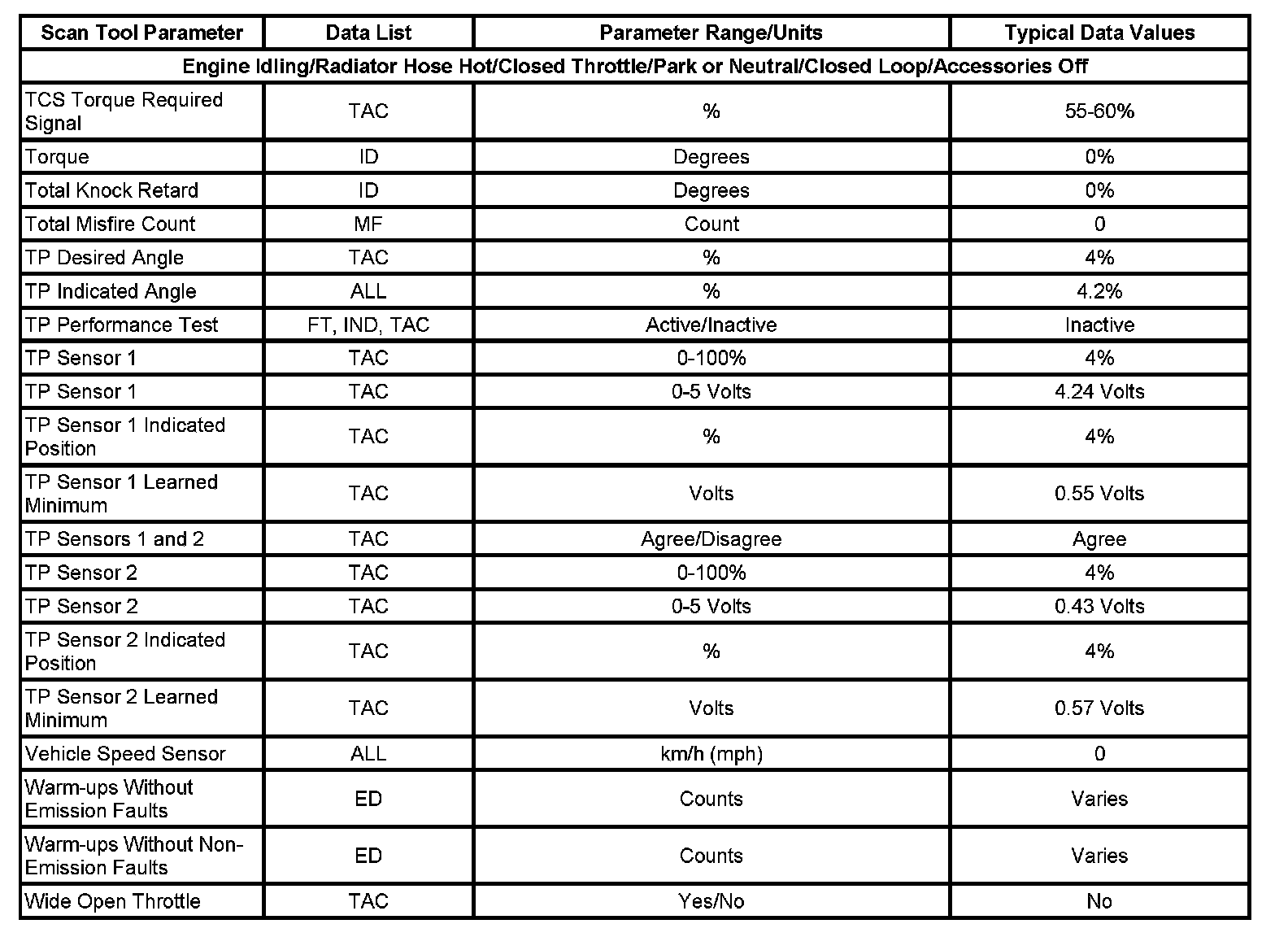 Only the parameters listed below are referenced in this service data for use in diagnosis. If all values are within the typical range described below, refer to Symptoms - Computers and Control Systems for diagnosis. - Symptoms - Engine Controls