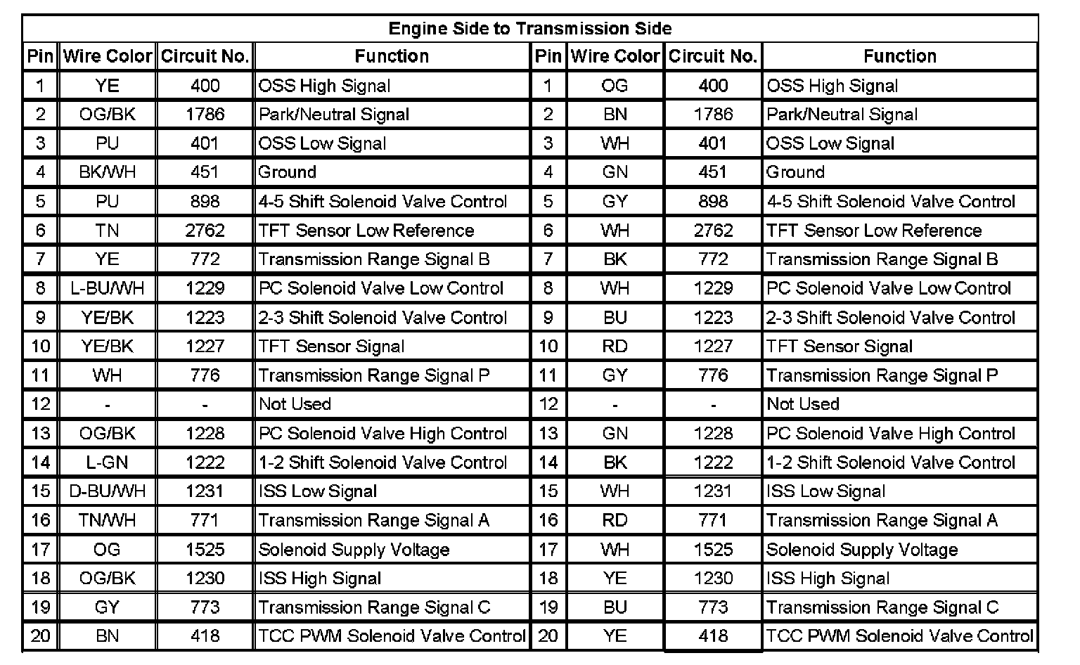 Automatic Transmission Inline 20-Way Connector End View