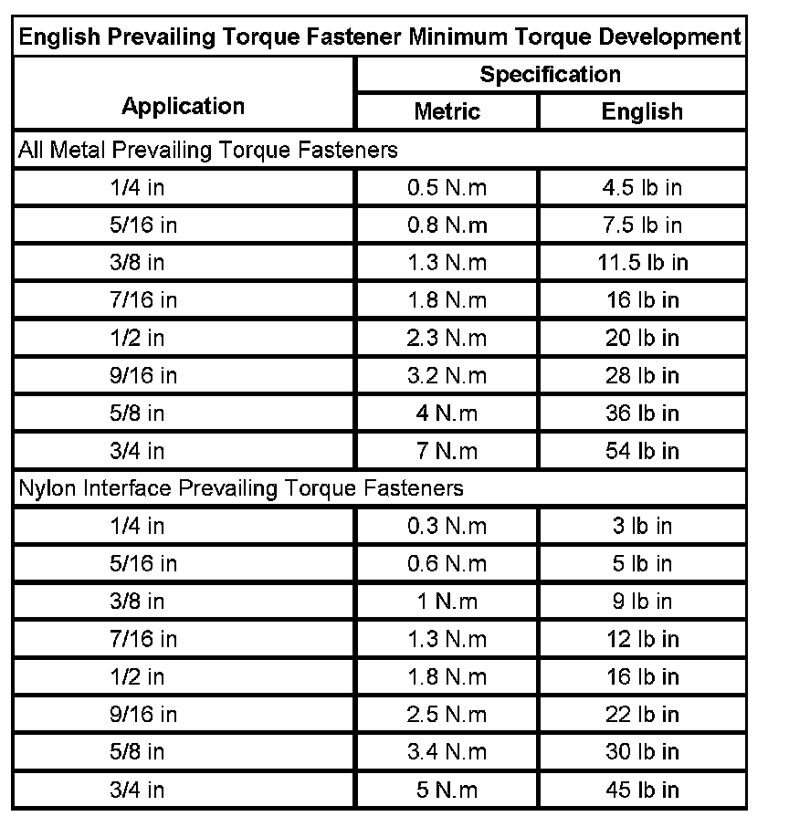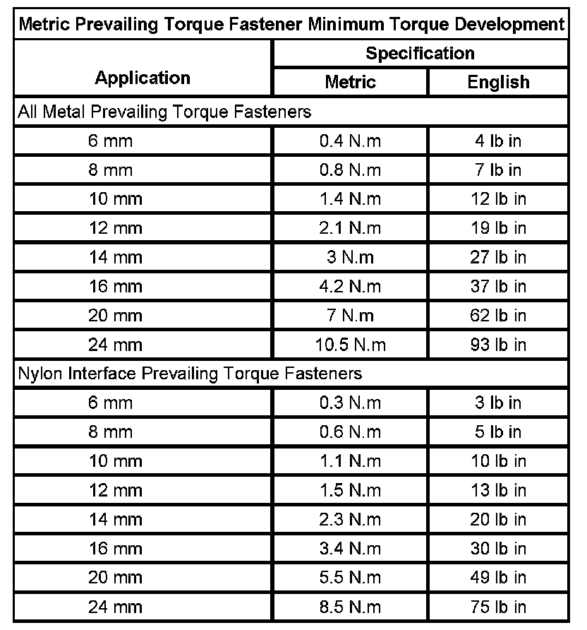 Prevailing Torque Fasteners