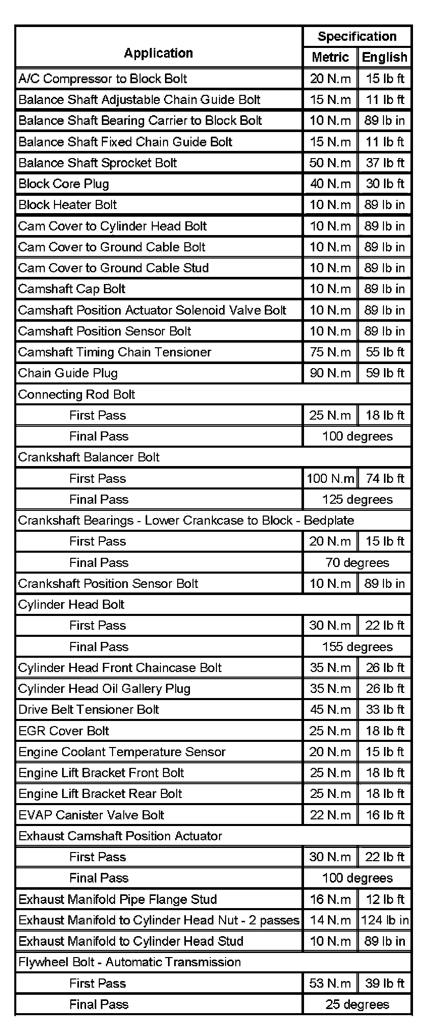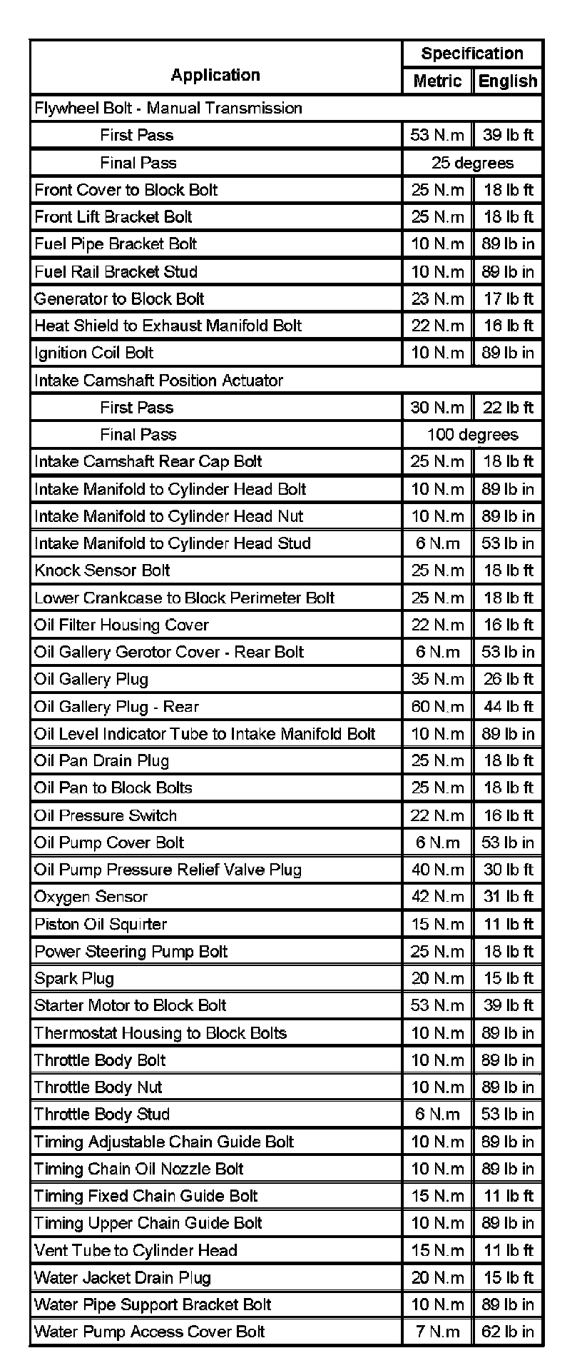 Fastener Tightening Specifications (Part 1):