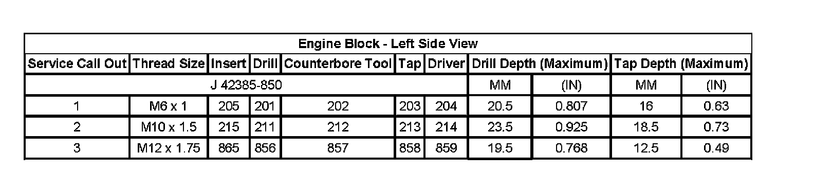 Home >> Saturn >> 2007 >> Sky L4-2.4L >> Repair and Diagnosis >> Specifications >> Mechanical Specifications >> Engine >> System Specifications >> Thread Repair Specifications