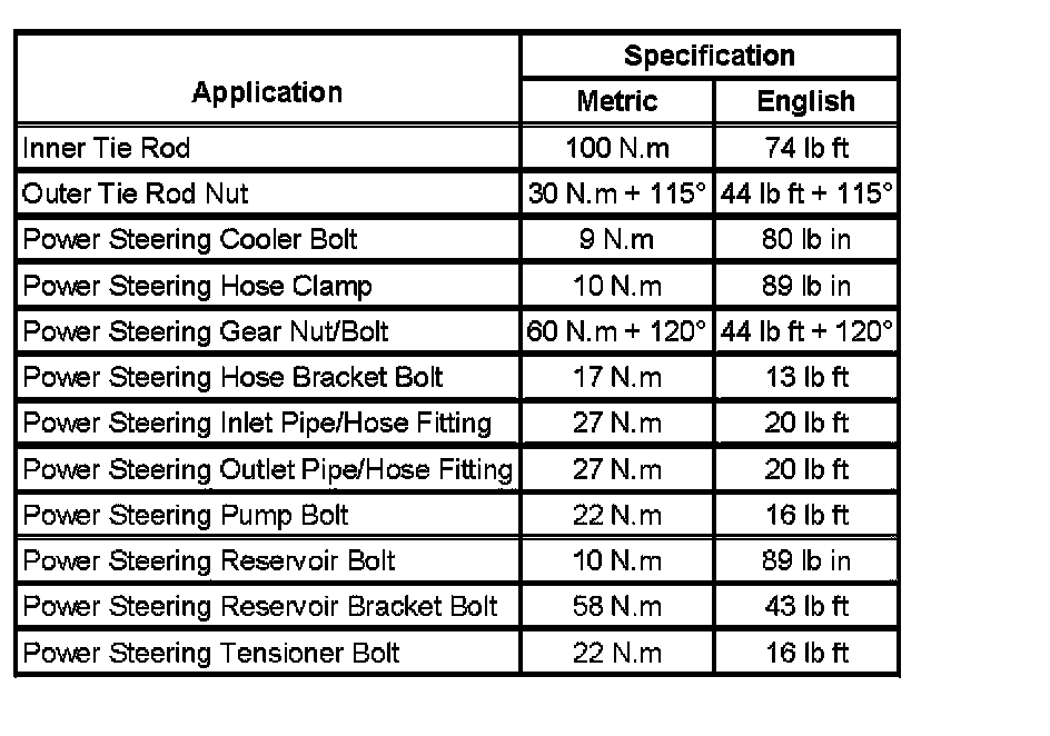 Fastener Tightening Specifications: