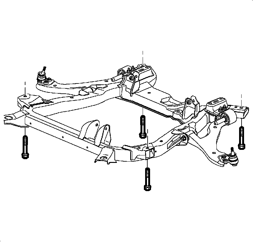 1.Remove the front frame-to-body bolts. DISCARD the bolts.