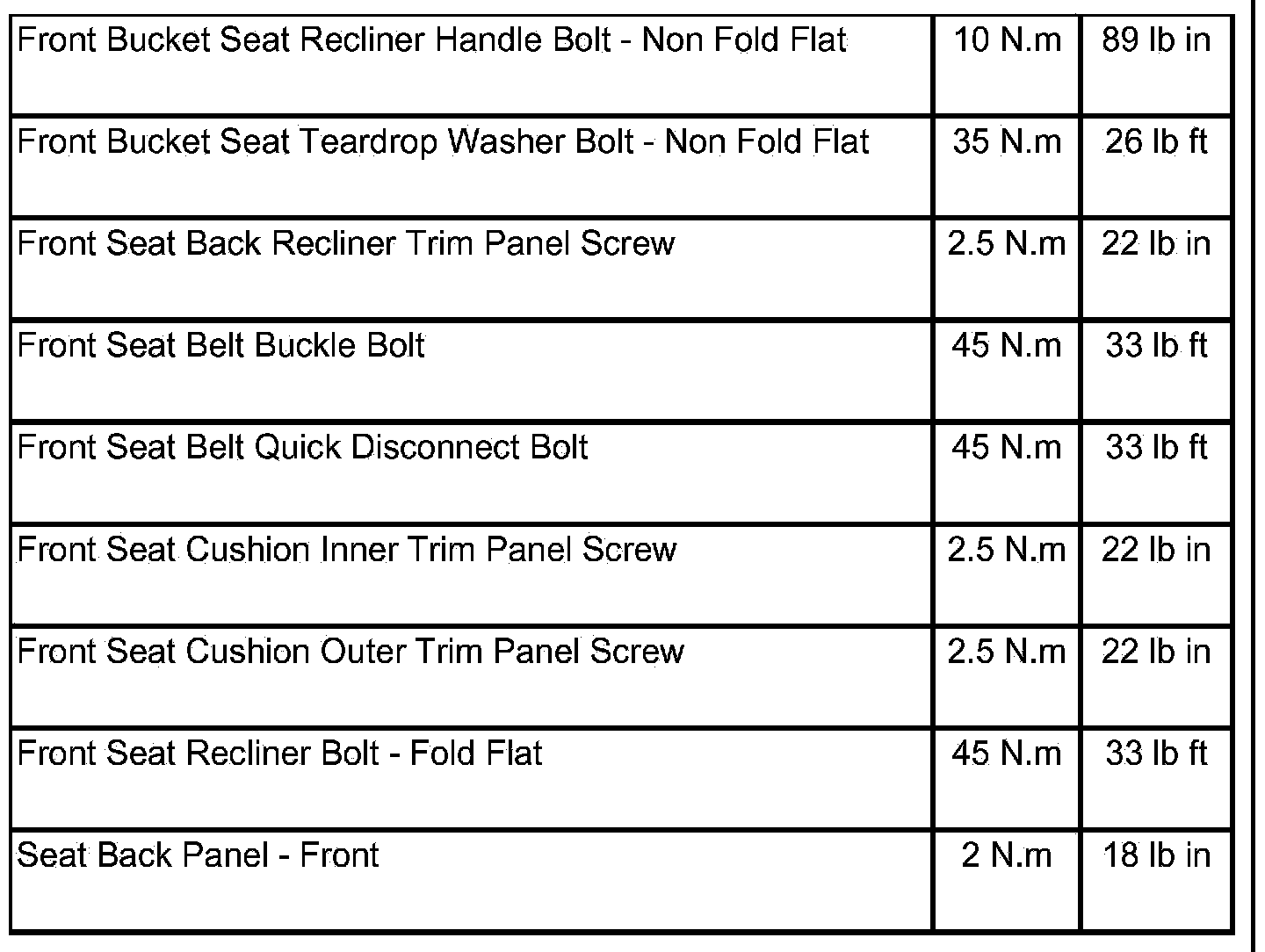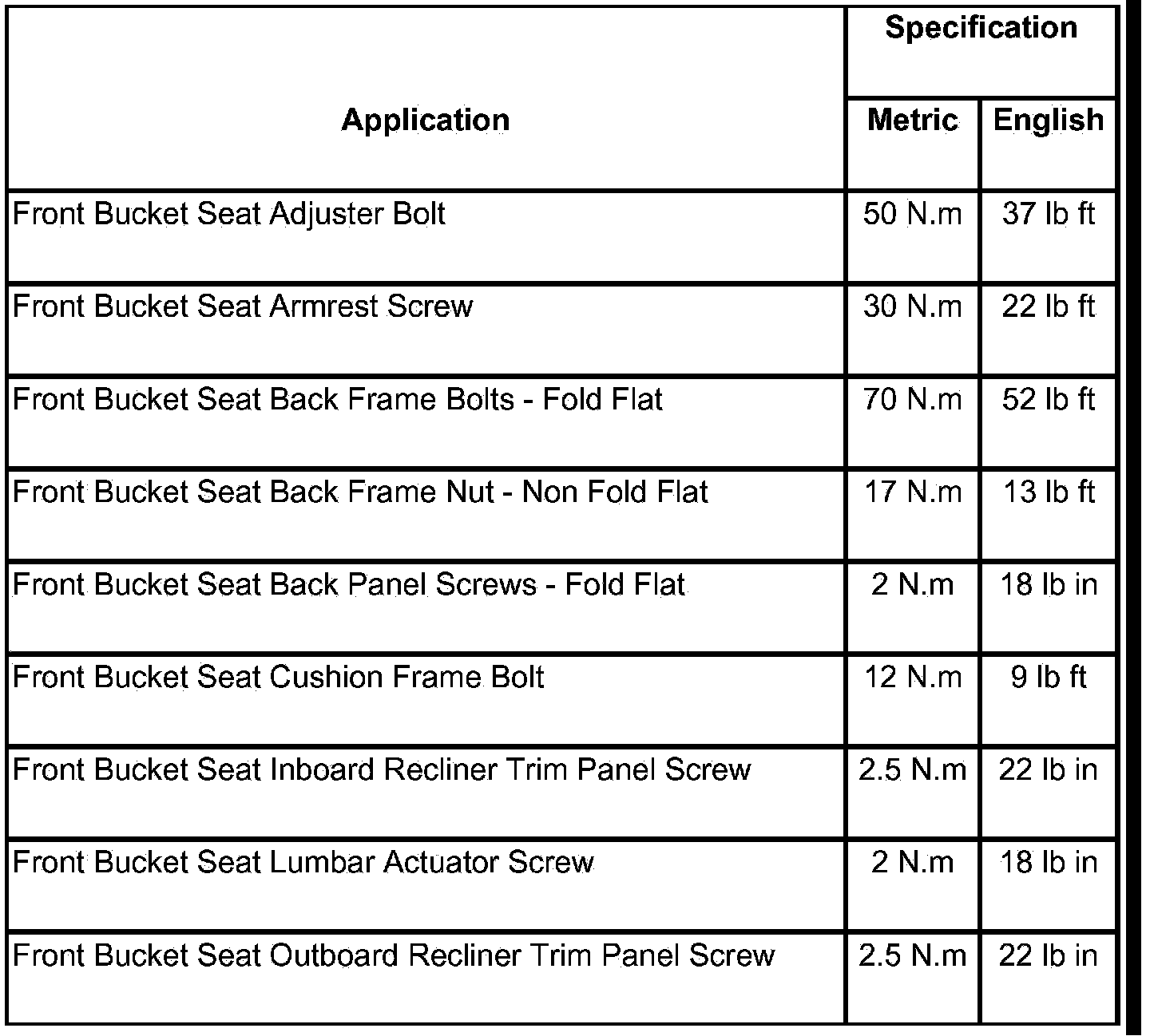 Fastener Tightening Specifications