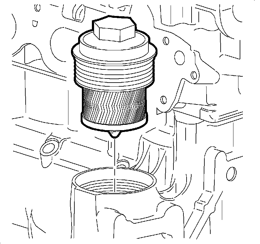 12. Install the oil filter cap with the element into the casting in the block and tighten.