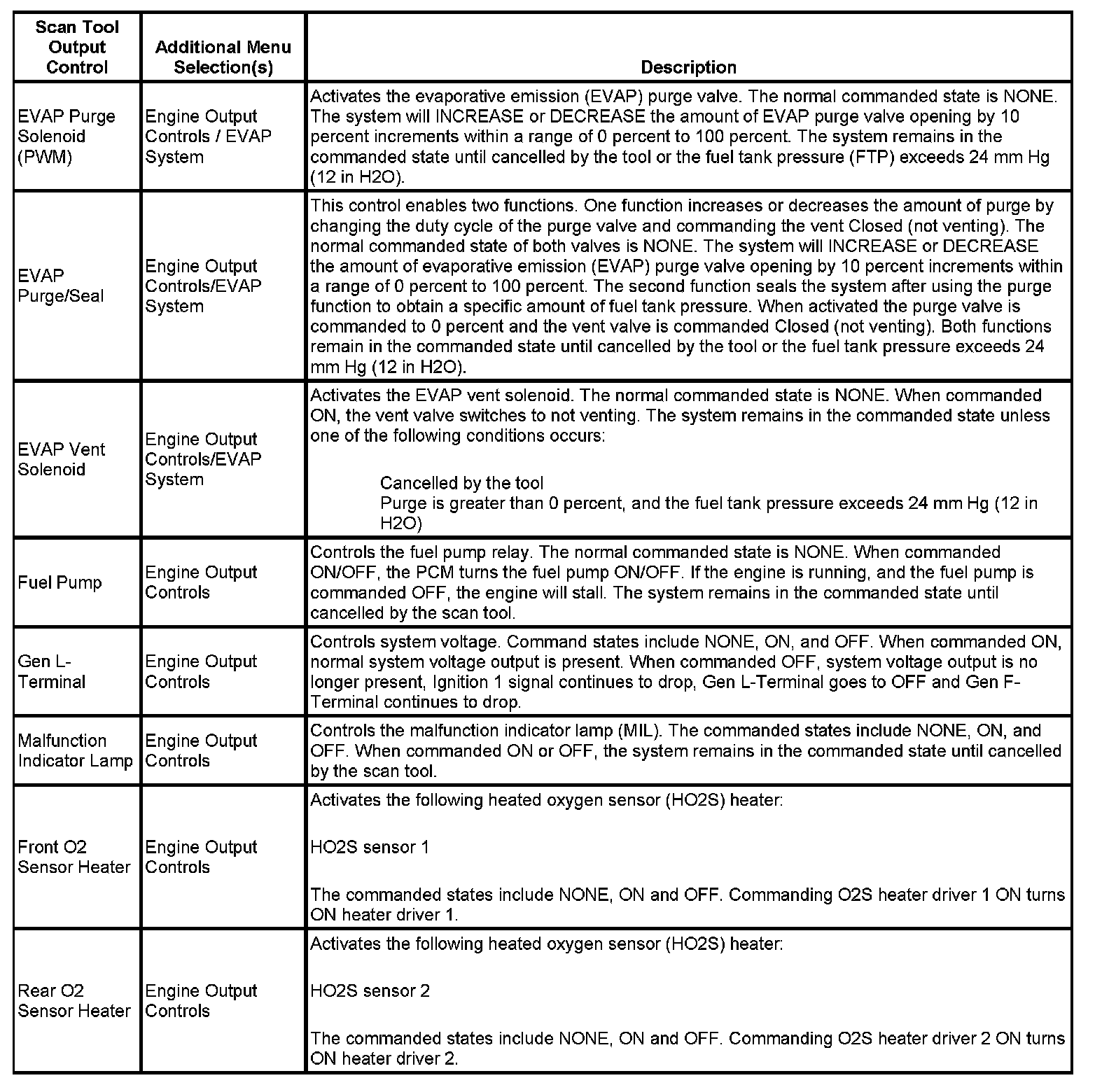Scan Tool Output Controls