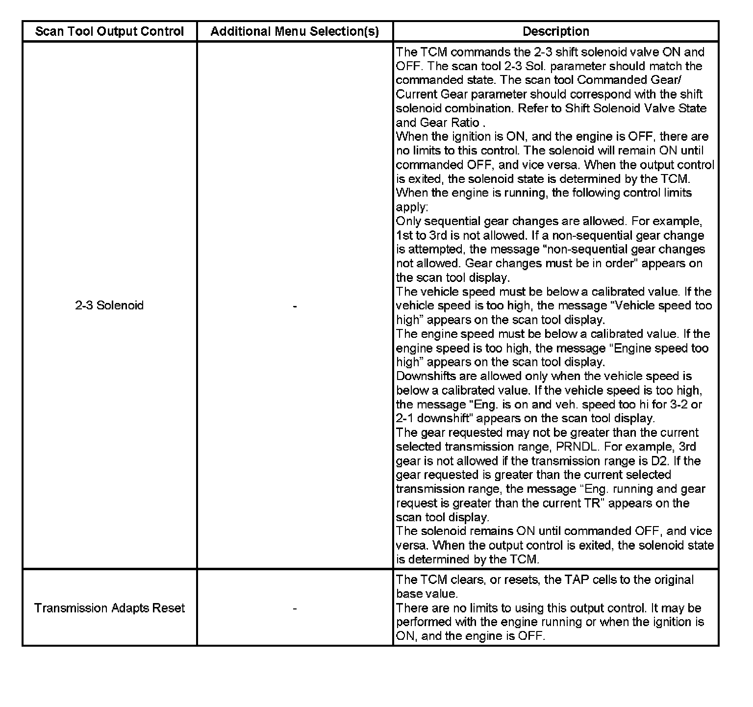 Scan Tool Output Controls